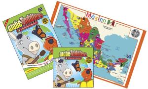The award-winning Mexico Gift Set from Tot Talk includes a Mexican map placemat, the Adventures in Mexico CD and the Adventures in Mexico DVD. Creator Sara Danzelaud is extremely passionate about early learning especially when it comes to bilingual or multilingual language opportunities and that is reflected in her products. The placemat is thickly laminated for multiple use. The front side of the placemat shows a map of Mexico’s 32 mainland states with graphics that demonstrate Mexico’s culture and include over 60 words in Spanish. The back of the placemat has many phrases in Spanish and English as well as how to count to 100 in Spanish. You can even color this placemat with a dry erase marker for added fun. The Globe-Toddler Adventures of Mexico DVD is an interactive multiligual DVD with the multi-language narration options of English, Spanish, French or Chinese. It offers narration through puppets, children and animation while exploring all the wonderful sites, instruments, exotic animals and plants of Mexico through a background of music. I really love the After The Video Activities mentioned such as making guacamole, working with a butterfly kit and exploring geography on the Tot Talk’s Mexico map. The Adventures of Mexico CD is the soundtrack of the DVD and lyrics are included in both Spanish and English for the 14 tracks. Definitely check out the 3rd song called ‘El Chocolate’ which is Tot Talk’s unique version of this folklore song.