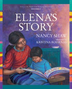 Elena’s Story is the latest book in the Tales of the World fiction series for children about other kids around the world through Sleeping Bear Press to be released on August 1, 2012. The idea behind this series is to bring fictional tales from other countries home to our young readers. Elena is from Guatemala and her story of how she is trying to go to school and learn to read while also helping her hardworking family. While her father is away on a plantation, Elena helps her mom with her siblings and with household duties while she also struggles to go to school and learn to read Spanish (her mother speaks Mayan and cannot read). She needs to conserve the candles that she would need to read at night although her mother hears her reading to her little brother one night and is very proud of her daughter and not caring about her use of the candles. This is a very sweet and simple story about a loving family in Guatemala who works hard to make their children’s lives better through hard work and education.