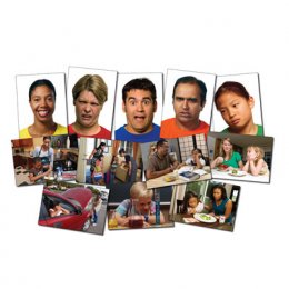 The Language Builder Program’s Emotion Cards is an 80 hi-gloss piece card set on 3 ½” x 5″ cards to help children age three and up to discuss and identify emotions and feelings. Each card is numbered for the parent and labeled for each feature image with suggested activities for the card. This set is awesome because it not only features children as young as one, it also features facial expression emotions from people in their 70s, males and females and many different cultural and ethnic backgrounds. 40 cards in the set are of a wide variety of people showing only the upper half of the body and displaying one of the five basic emotions listed below. The other 40 cards are scenario cards with people in realistic situations for open discussion on their possible emotions happening in each card. An activity booklet is also included with more ideas and instruction on how to use these cards. If you like this kit, don’t forget to check out the rest of the Language Builder Program through Fun and Function!