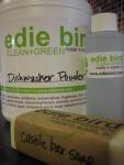 One great way to try out the Edie Bird products is through their new Starter Bundle.  The Green + Clean motto is accurate and Jenni has personally made sure that harmful ingredients found in most cleaning products (sodium lauryl sulfate, parabens, phosphates and *ugh* chlorine) are not in line with her companies ingredients.  If you are concerned about using clean + green and wondering if the ‘clean’ works, well, I will tell you that it does.  No streaks on the dishes, no streaks on my windows and no worries of little preschooler feet on my floor soaking up harmful chemicals.  Make sure to create your online account through the Edie Bird website with your pick up location information and you are ready to get started.  Or, my local Austinites, swing by Wheatsville Co-Op today to pick some up of the laundry soap (in the bulk section) in person and try some out today!