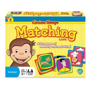 We spend a lot of time at the book store chain Half-Price Books which seems to have its share of unused children’s books from the UK that they ship to the US for a discount price. Just our luck, we were able to purchase almost the entire Curious George collection in paperback at bargain bin discounts! Curious George (or just “George” as Brooke calls him, refusing to believe his first name is ‘Curious’) is a favorite set with a particular fondness for Curious George and the Firefighters. She loves the loud fire truck noises we make as we read and she thinks it is funny how George plays with all the kids while the firefighters put out the fire. As you know, I love educational games based on children’s literature and a Curious George matching game was perfect for our daughter.