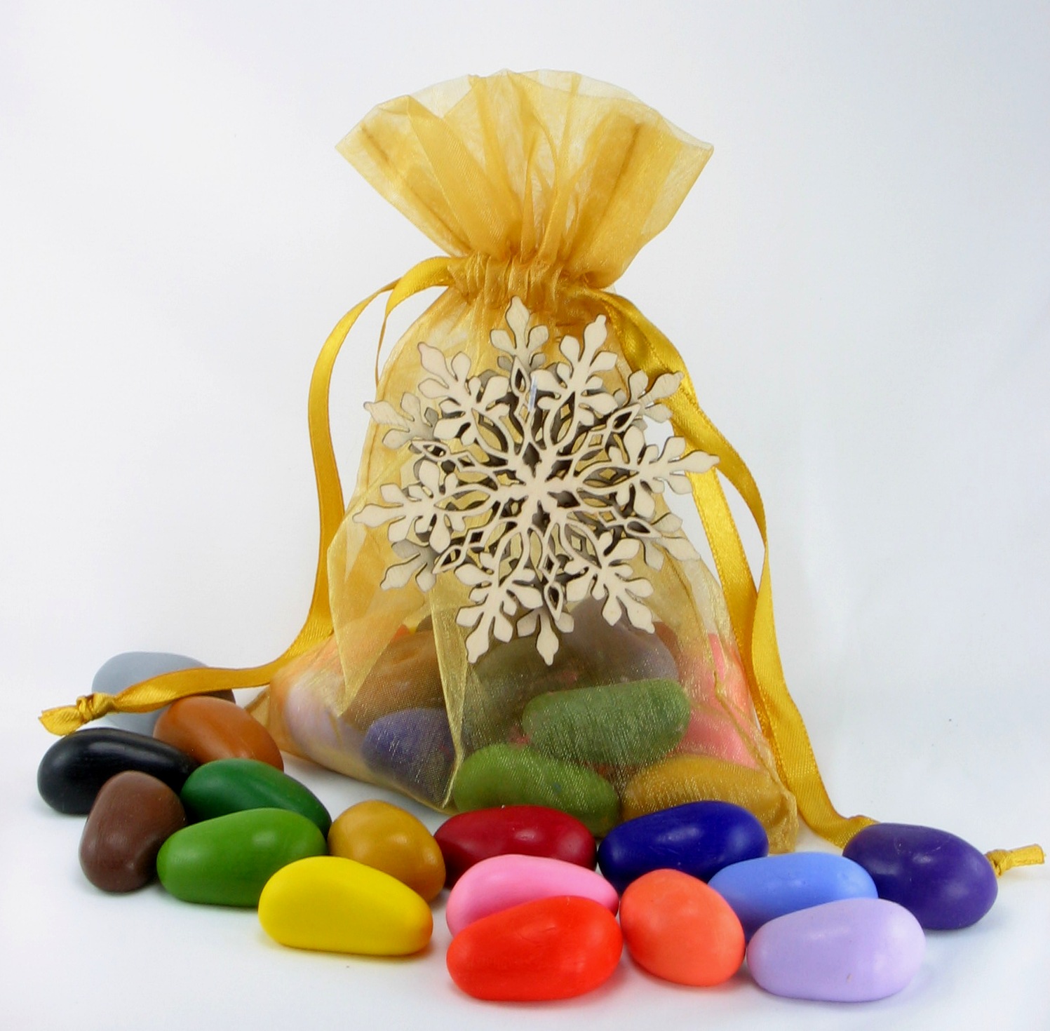 The Crayon Rocks Christmas Special set comes with 20 crayon rocks and a fabulous wood snowflake to do rubbings. The set comes in an adorable golden pouch, which is perfect for the holiday season. It may seem early for a holiday stocking stuffer review, but this is a cool limited edition (complete with the adorable snowflake) and I wanted to get the word out early while supplies last! The crayons are made with all natural soy wax from USA grown soybeans and colored with mineral pigments. Although Barbara started crayon rocks in California, she moved her operation to rural Kentucky in 2011 and fell in love with the area. You must check out some of Barbara’s crayon rock drawing here. So cute!