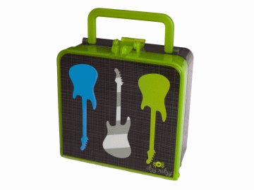 Can you guess which one we chose? If you chose Rock Star, you are indeed correct! Not only does it have a sweet and colorful guitar print that is unisex, it also rocks. Even better, the Bento Box is FDA approved food safe, lead free, phthalate free, PVC free and BPA free. It also has two separate sections (top and bottom) to hold sandwiches and other entrees with the lower section with portion controls. It has a nice handle for small hands to carry and has nice dimensions of 5.6″ x 5.6″ x 4″. It is also dishwasher safe (top rack only, please). This is an easy to use lunch box that is perfect for an organizing freak like me. Plus, I love that my daughter looks like a Rock Star with it in hand!