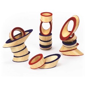 The Totter Towers are very distinct bamboo ring building blocks that can be made and shaped into a variety of structures and helps improve hand-eye coordination. This is definitely a creative child’s dream and interestingly enough so that parents want to join in the building fun. The design was done in cooperation with the Weimar Bauhaus University (the famous art school in Germany) and it helps to develop geometric and special awareness for children. Brooke, who has formed a love of building through several products I have reviewed, took to these interesting building blocks right away and began putting the loops at different angles and building them upward. I can see she will be playing with these blocks for many years and they are exceptional play-date toys sure to be the hit of the party!