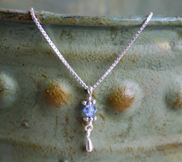 Baby Tears Memorial Necklace is a tiny sterling teardrop that hangs lightly from a swarovski crystal in a birthstone color on an 18″ sterling box chain.  It is a symbolic piece of tears cried of losing a little one and baby tears we would never wipe away.  Kimberly, owner and creator of Le Belle Dame, is such a sweet gentle soul and her entire website is dedicated to supporting the spirit, including pet memorial gifts.  I don’t know her, but I love her.  She lovingly created this necklace as symbolic tears of compassion we share for all mothers who know this sadness.  I am honored to share this memorial necklace in B’s box and the poem I included above comes with the necklace as a perfect example of words not easily expressed being put into a poem that helps me understand and….feel better.