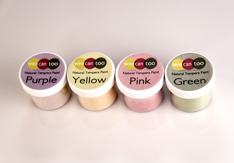 Veggie Tempera Paints by Wee Can Too Art is tempura paints with no hard chemicals for kids with ‘curious mouths’. While a lot of Wee Can Too Art products are 6 months and older, the tempura pants are for 12 months and up. Even thought it contains Natural Fruit Acid it is not recommended for kids younger than one year. The product is still made with the same organic fruit and veggies and although safe to eat, it is not recommended. Just mix the paints with water in a separate container and you can keep this set as long as you like. The set contains the four vibrant colors of Purple, Yellow, Pink and Green and they are quite lively. We love to do finger paintings while sitting on the ground on a splat mat for easy clean up and we always have a blast. I can say now after a few years of using Wee Can Too Art that is has inspired the love of art and creativity in our house and it’s a product we firmly believe in. Keep up the good work and keep the new products coming!