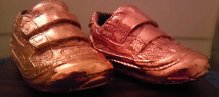 Brooke was just over a year when we got her ‘fitted’ for her first pair of walking shoes at Sandy’s Shoes here in Austin (see the attached picture). At the time she was really taking off and even had a new favorite word ‘shoe’, but we had no idea on what to get to help her feel stable in her new ability. The sales lady was FANTASTIC and explained how different feet fit better in certain shoes. It really isn’t all about the most expensive or most well known brand, it really is about the comfort and design that works for your foot. Well, we found it that day and haven’t looked back. We heart Pediped. In fact, those very same shoes are now bronzed and displayed in Brooke’s room and we plan to do the same with Brie’s first pair of walking shoes, the new PediPed Grip n Go Luna.