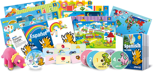 I really love to work with and try out different language programs with Brooke to see which ones help her most and I am happy to say I have found a really great one called Dino Lingo. They have an excellent home education system for many different languages and since we are focusing on the country of Spain in our house at the moment we decided to try the Full Spanish set.