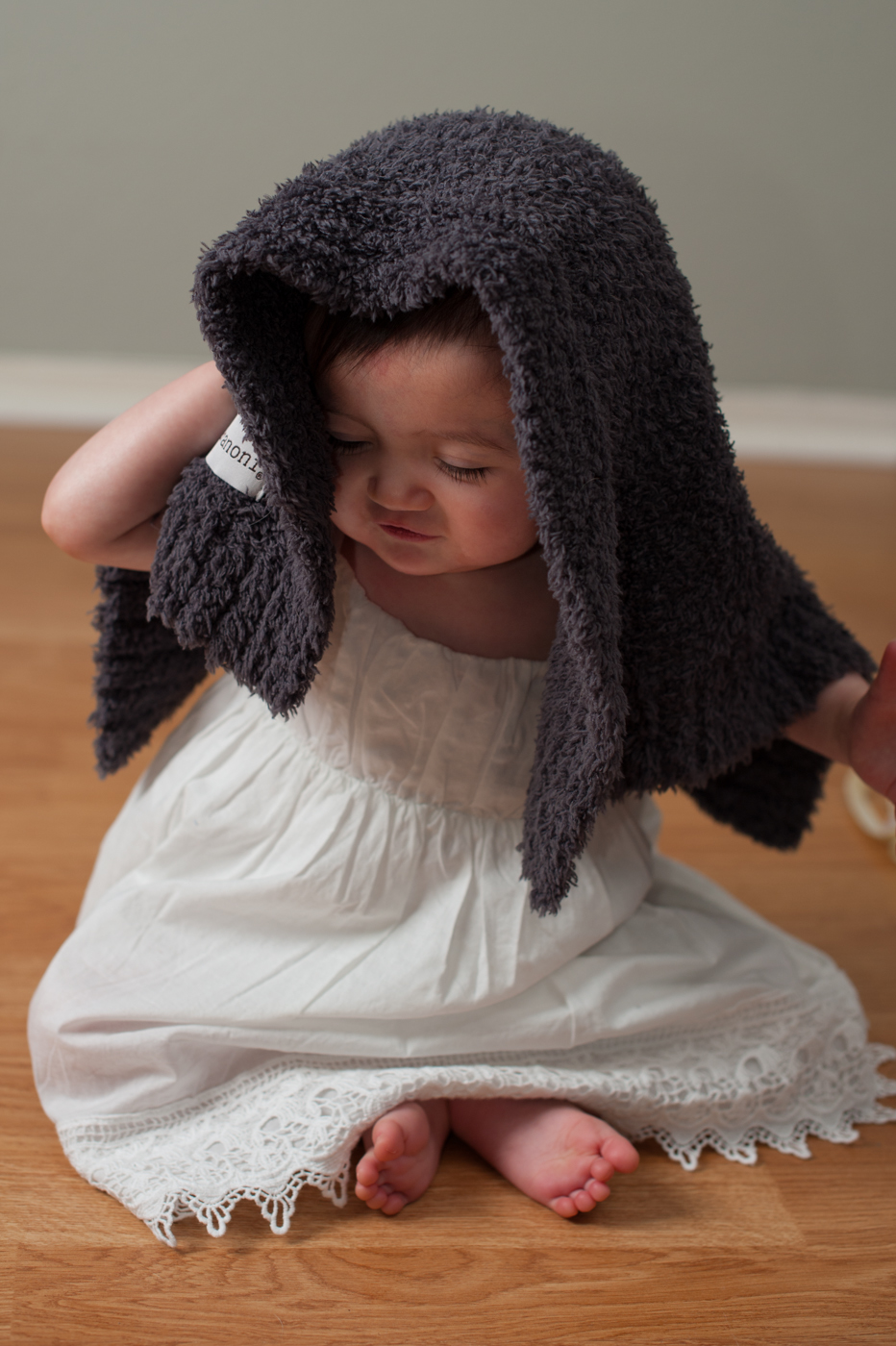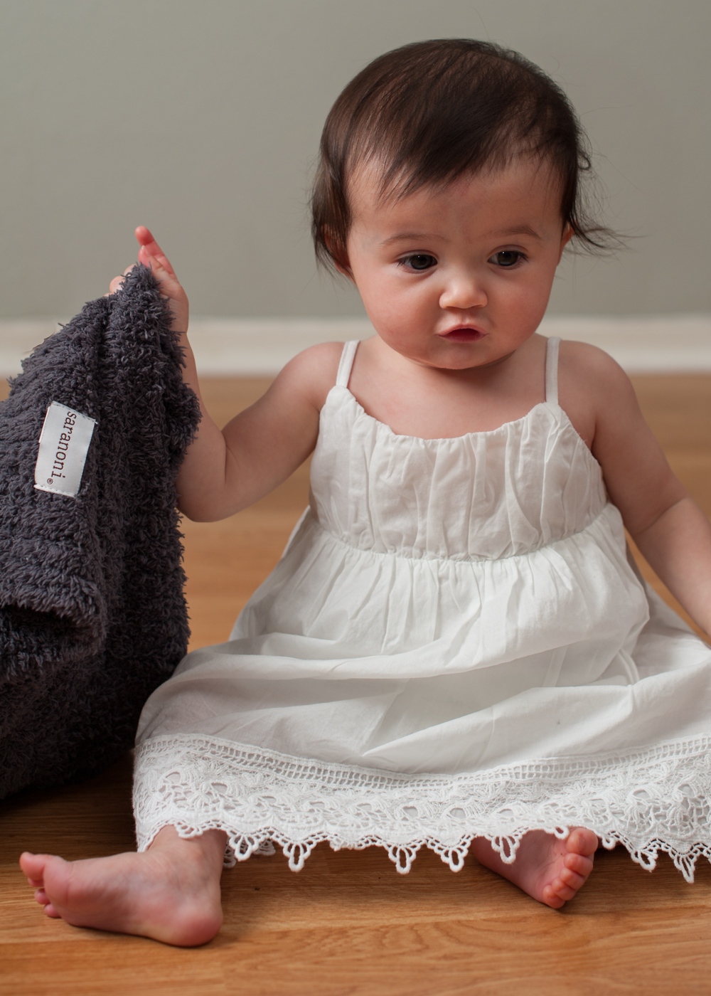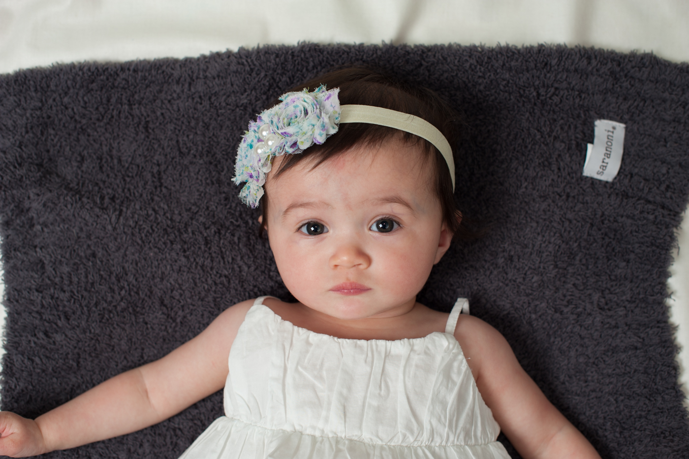 Have older babies? Saranoni has wonderful fluffy blankets in all sizes-not just these minis- for your mobile ones. Also, having an extra helper to distract baby (my older daughter Brooke usually helps to get Brie to smile) is priceless! I’m going to keep trying and get it right with practice. Yeah for baby pictures!