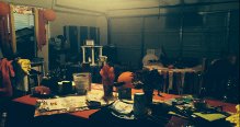 Decorating the garage a la ‘mesclarse’ style! Throw in some hints of two girl’s birthday parties, a daddy’s graduation and two weekends to blow two grandparent’s minds before the next time we meet.