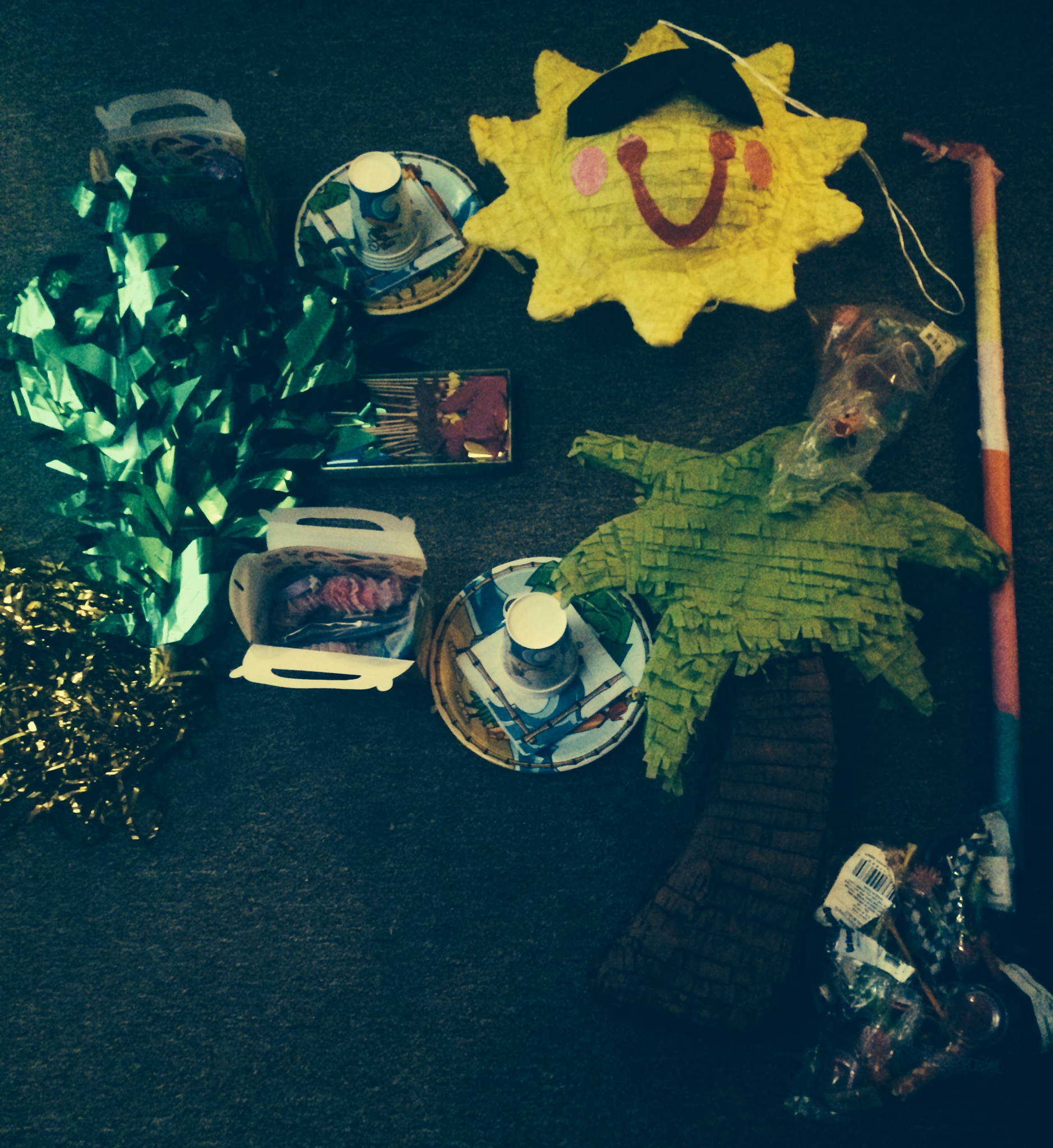 Yes, (I know..I know….so I did go over budget by six dollars, but I promise you that the jumbo palm tree decoration that was used for both parties was so worth it. And, as we all know, pictures are worth a thousand words, so let’s see how the parties look: