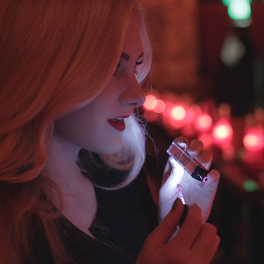 - Turn Me On in our Muse shade, a crimson matte lipstick with special LED illumination and mirrored case for effortless application. Formulated with Coconut Oil and Lychee Extract. YUMMY smell and great coverage. The light is just fantastic on the lipstick case.