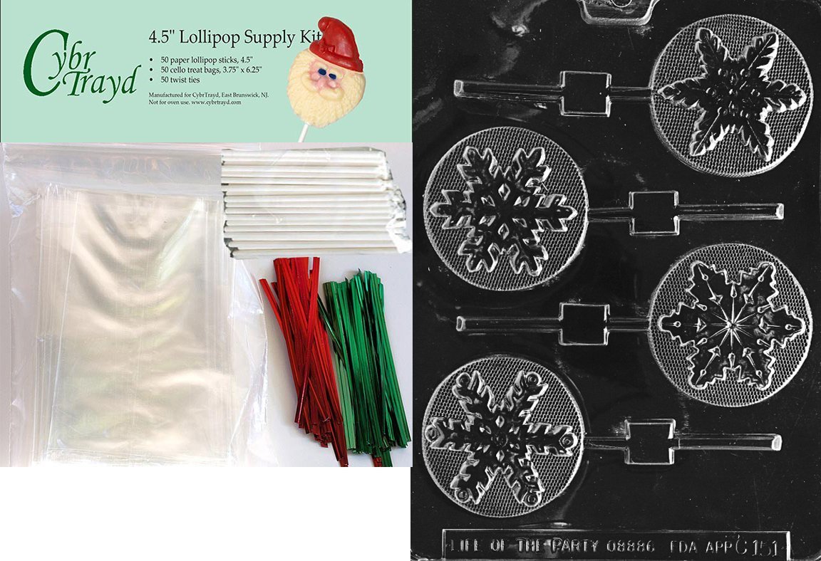 Cybrtrayd Assorted Snowflakes Lolly Christmas Chocolate Mold with Lollipop Kit