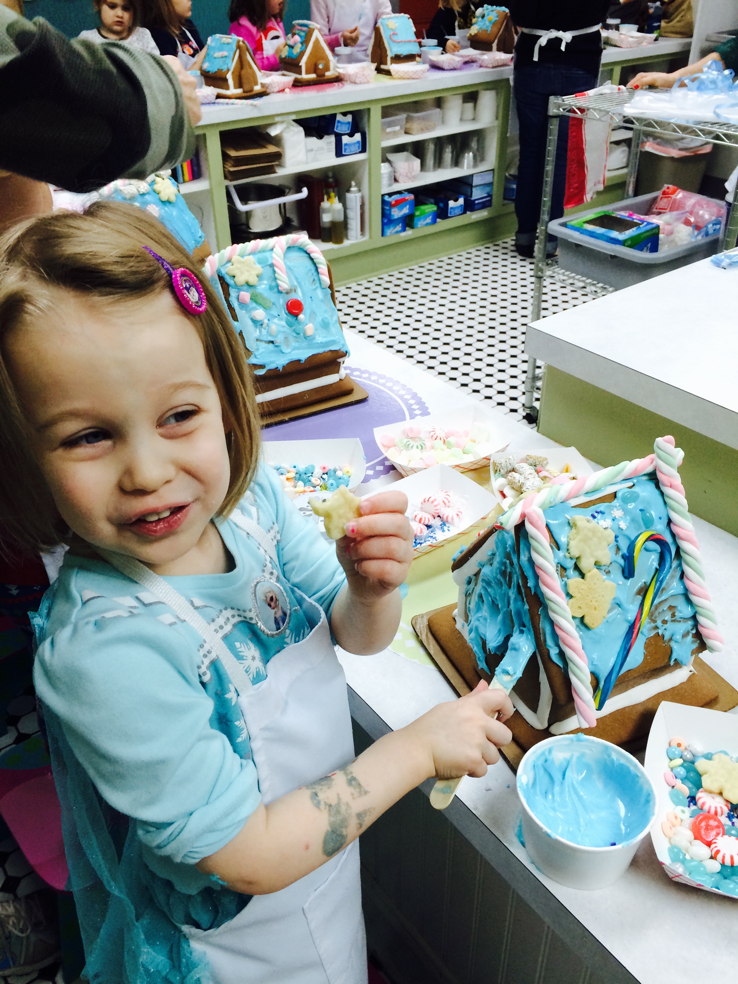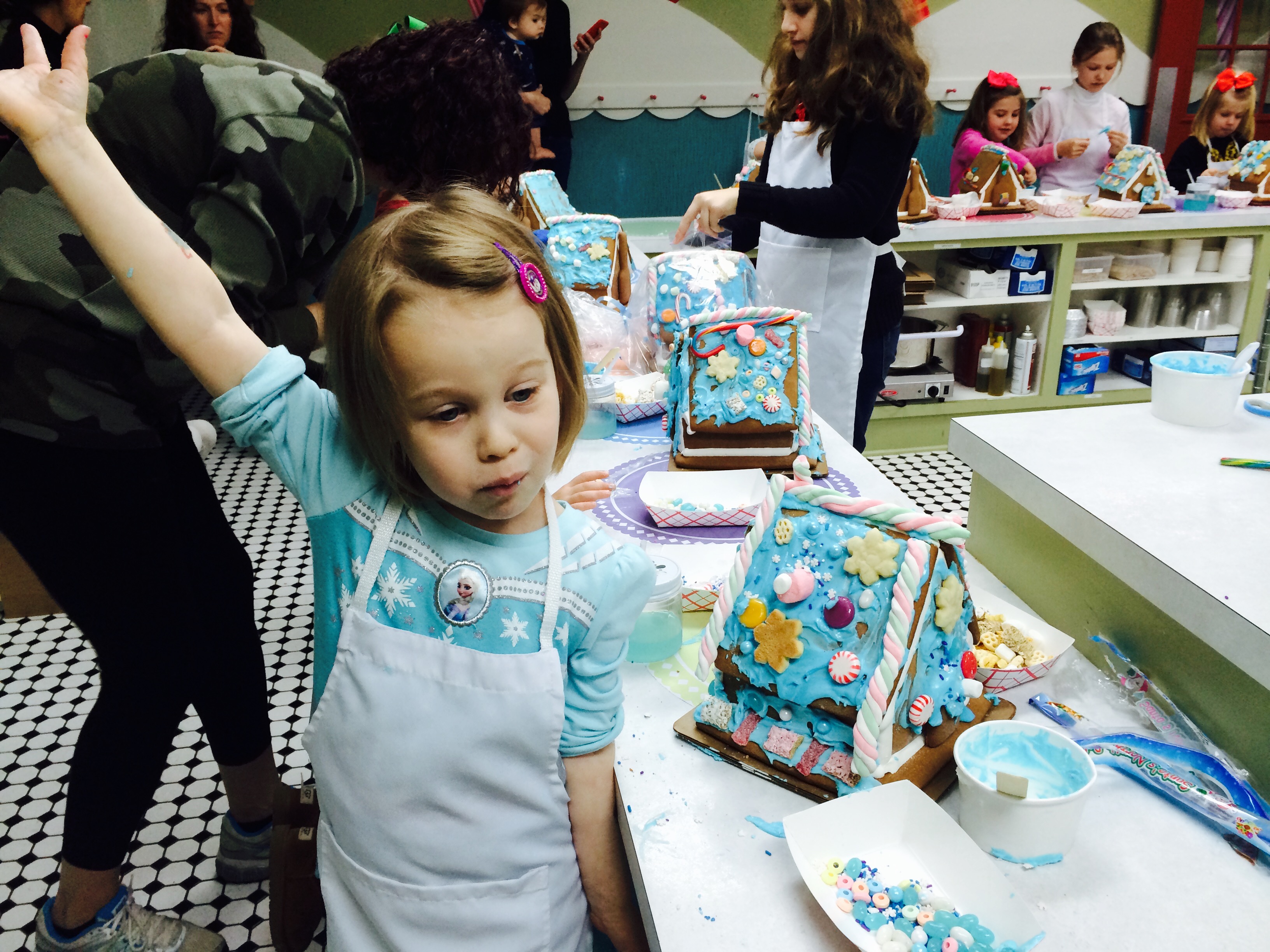 “Attendees will embellish freshly made gingerbread houses and turn them into Frozen® Snow Castles with royal icing and all sorts of Snow Princess candies and decorations. Kids will enjoy Snow Queen Punch and Tiny Snowball Cookies. Recipes included.”