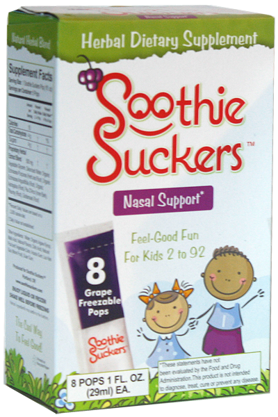 Soothie Suckers Nasal Support Ice Pops are blended in a base of Echnacea and Astragalus with additional herbs for upper respiratory support
