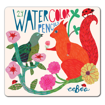 eeBoos watercolor pencils come in a charming tin with illustrations by Monica. Geared towards ages 5+, these pencils are made to color first then use a brush (not included) to brush over the design with water for a watercolor effect. These are a bold color set that can be layered and done in many different watercolor techniques. Fun!