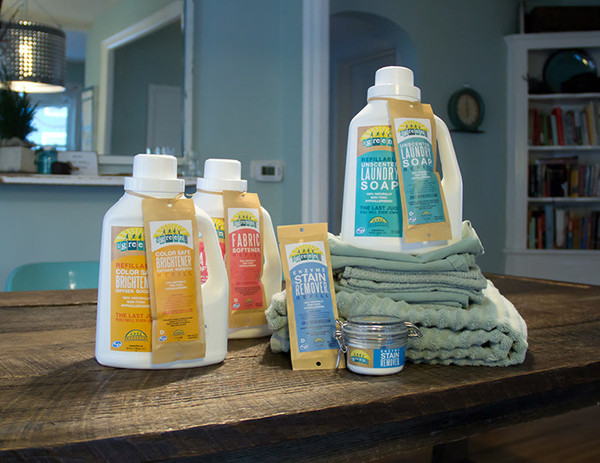 When I first read about MyGreenFills.com laundry soap, I thought there had to be a catch. Each month, mygreenfills will send you a pouch (or ten!) of their dry laundry soap that is shipped free to your door. By mixing their pouch with water in (what they call) the ‘last laundry soap jug you will ever need’ -which is sent to you with your very first order- you are able to get a 50-load laundry soap totally free of chemicals! And – it’s not just laundry soap that mygreenfills will send you; they offer pouches of fabric softener, color safe brightener, and Enzyme Stain Remover. All free of “gobbledygook” on your family’s skin!