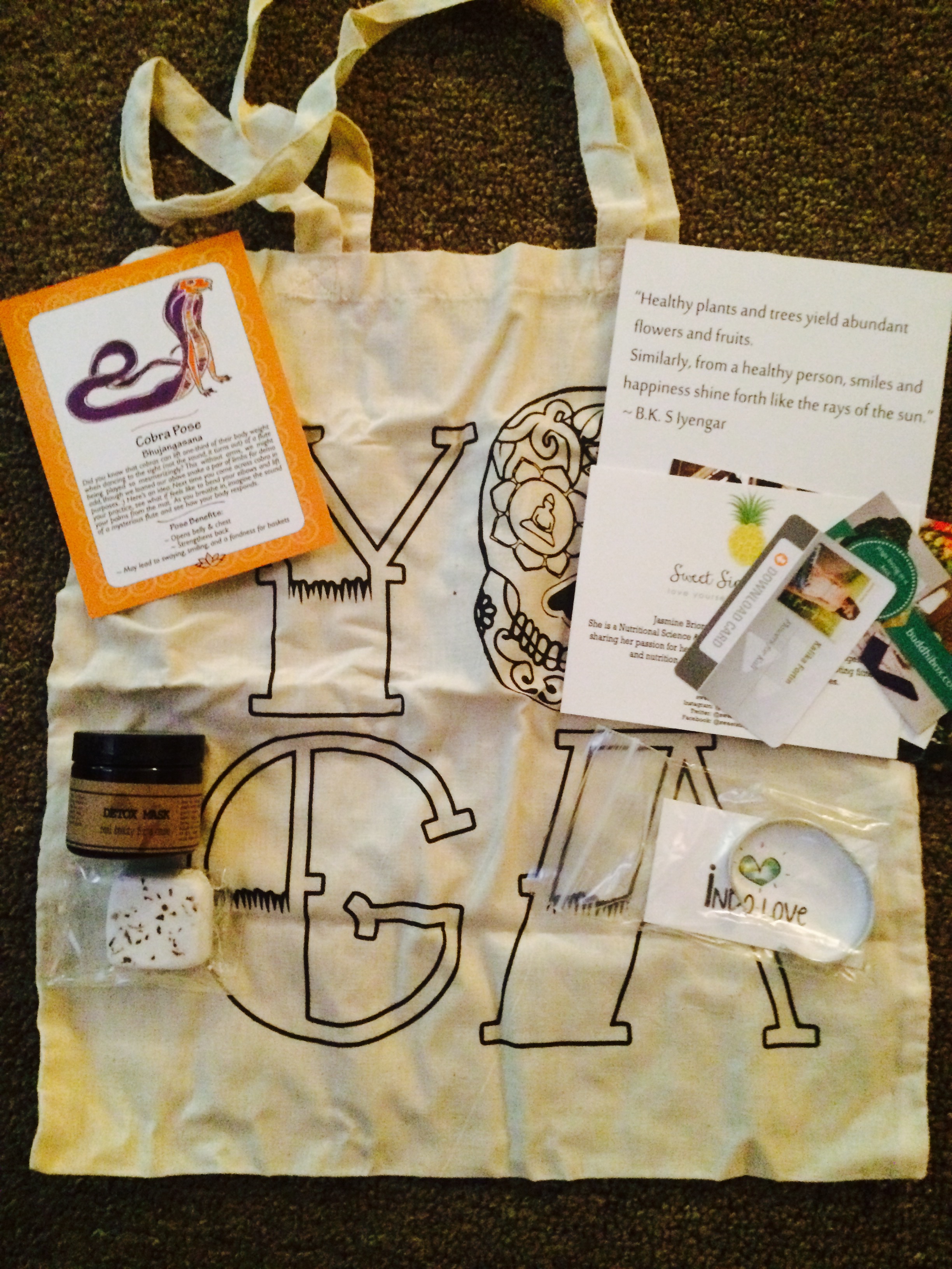 - Foursee Apparel Yoga Tote Bag – I love getting new tote bags and this one had a fun sugarskull picture on it as the “O” in the printed word “YOGA”. Cute!