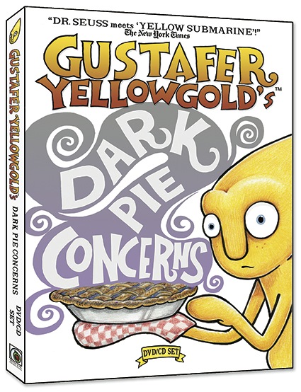 Gustafer Yellowgold’s Dark Pie Concerns, the seventh and final installment in the award-winning series of Gustafer Yellowgold “Musical Moving Book” DVD/CD sets by illustrator/songwriter/performer Morgan Taylor