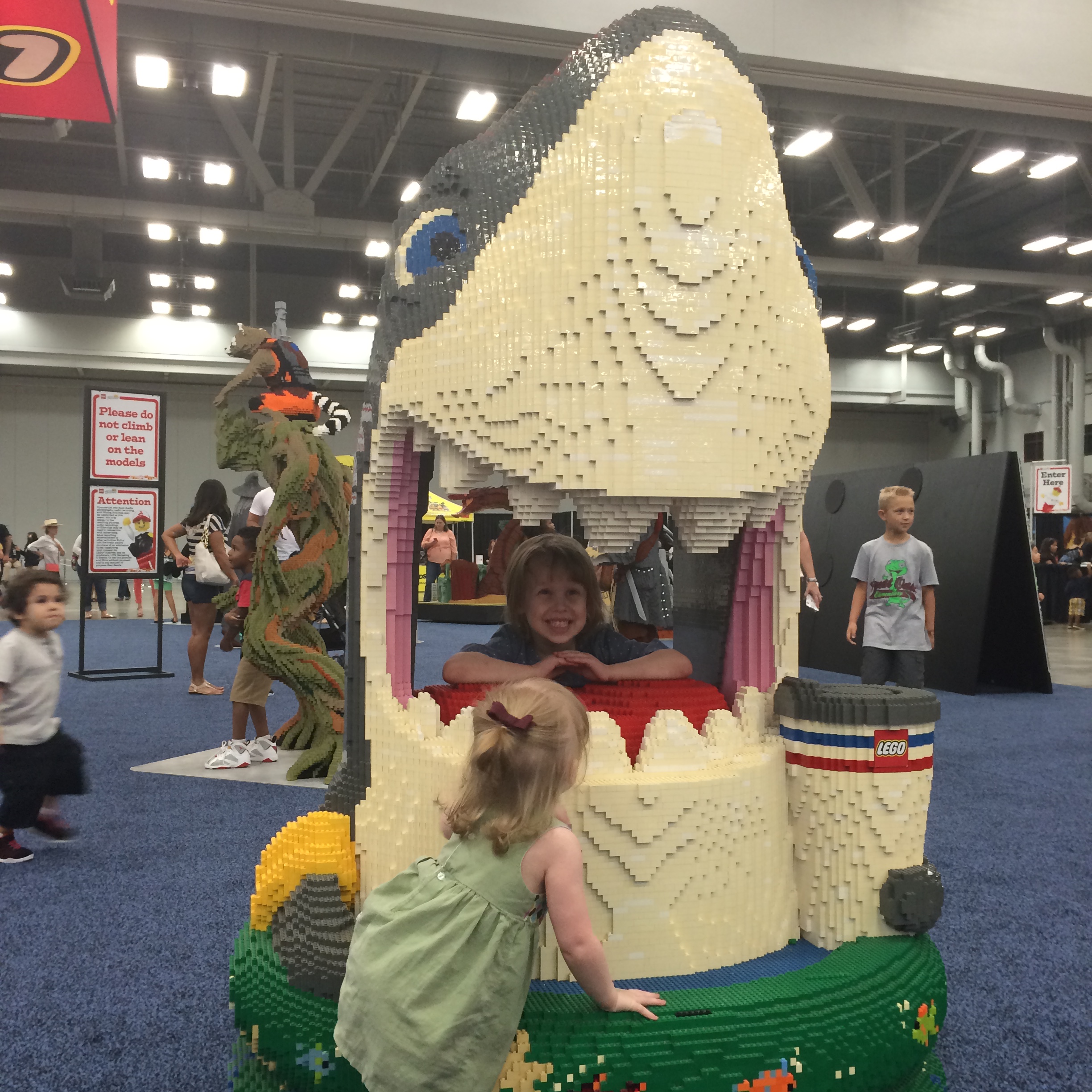 LEGO KidsFest Austin was AMAZING. The convention center is huge, so it was the perfect place to hold this event. There were Race Ramps, Model Museums, Construction Zones, Challenge Zones, and much much, much more. My oldest loved the Disney LEGO area which had a cute photo booth where we could take pictures. My youngest was obsessed with their Duplo section (LEGOs for the younger kids) and they even had a junior build area for young ones. The race ramps were fun to watch and the many, many displays of LEGO art in massive sizes impressed us all. It was a wonderful event. As always, pictures speak a THOUSAND words, so check out ours!