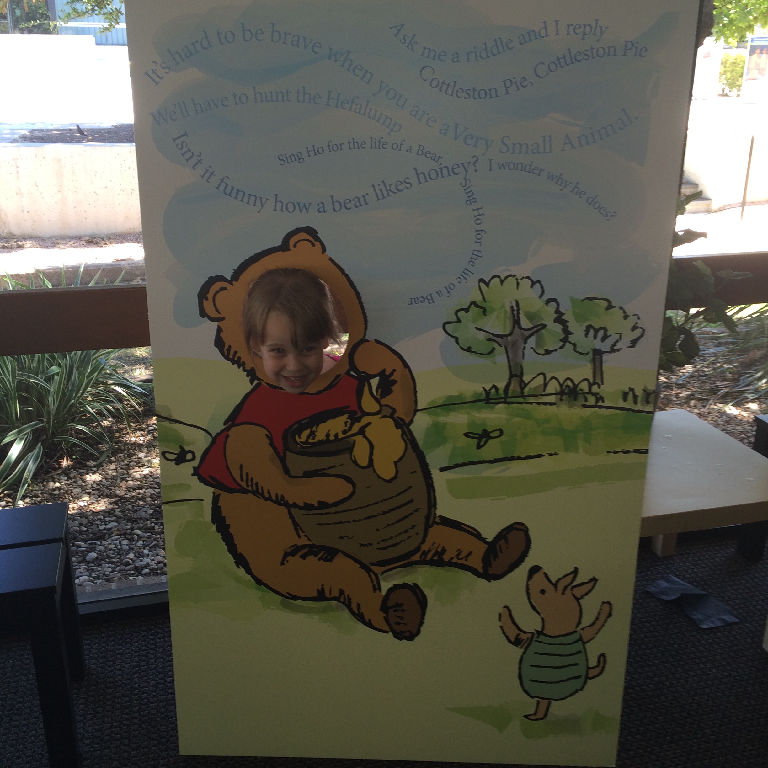My family and I were lucky enough to get tickets to see a LIVE performance of Winnie the Pooh at the Austin’s ZACH Theatre on Sunday September 20, 2015. I love Winnie the Pooh and so does my daughter. We probably sing the Winnie the Pooh theme song (from the animated film The Many Adventures of Winnie the Pooh from 1977) several times a day and she knows all the words. She has three Pooh dolls going from a mini one to one that is half the size of her arms. She calls them her ‘Three Poohs’ and when she was about three she decided that she couldn’t go to bed without them and their honey pots so they could drink during the night. It was so adorable.