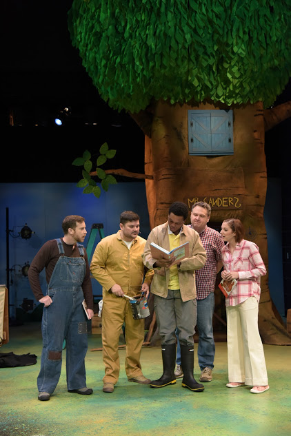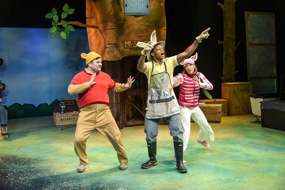 Will Cleveland as Winnie the Pooh, J. Quinton Johnson as Rabbit, and Sara Burke as Piglet