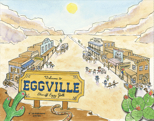 EGGY YOLK is the new sheriff of Eggville. He has a cool head, a keen eye, and a razor sharp wit—even in the face of danger!