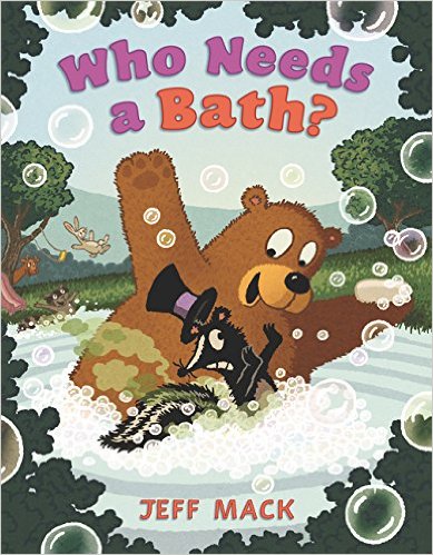 It’s Skunk’s birthday and Bear wants to throw him a wonderful surprise party. There is just one problem – Skunk stinks! Bear thinks he has found the perfect solution to get Skunk to take a bath so that all the woodland animals would come without Skunk’s offending odor. He will make bath time look FUN! However, no matter what Bear does, Skunk is not convinced that taking a bath would be a blast. Will Bear be able to get Skunk into the water or will his idea for a party turn into a real stinker? Jeff Mack’s book is funny and cute and Bob and I can both relate to Bear’s dilemma. Our oldest, Brooke, laughed throughout the whole book and Brie has been saying, “Skunk needs baf” which we all find amusing. Happy Reading!