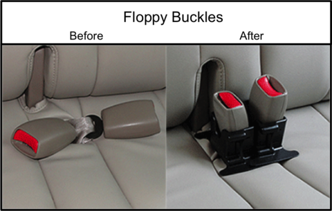 Mom-invented to keep rascally floppy backseat buckles propped up so anyone can buckle up independently