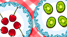 Complete the number sentence: ___ Cherries + ____ Kiwis = ____