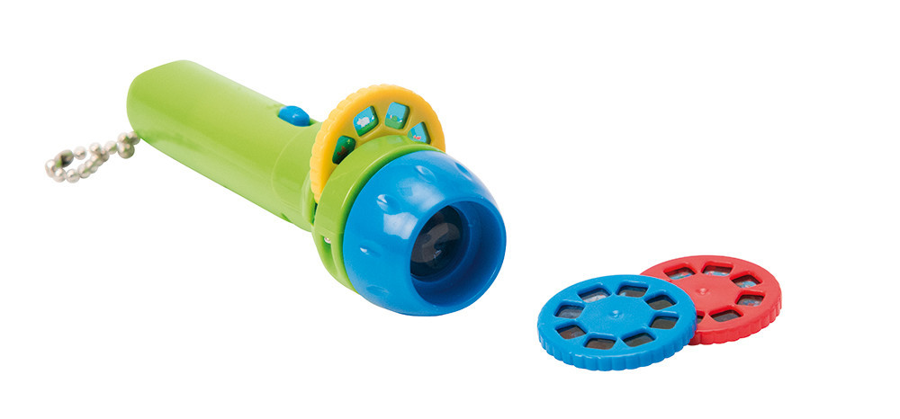The perfect interactive toy to encourage the development of your child’s imagination, this “flashlight” comes with three different projection discs that insert into the torch. The image can be focused to change the size of the movie! When projected onto a wall, each of the discs tells a colorful story from sowing carrot seeds to a tree changing with the seasons. The torch is perfectly sized for youngsters – 6” long by 2” wide.