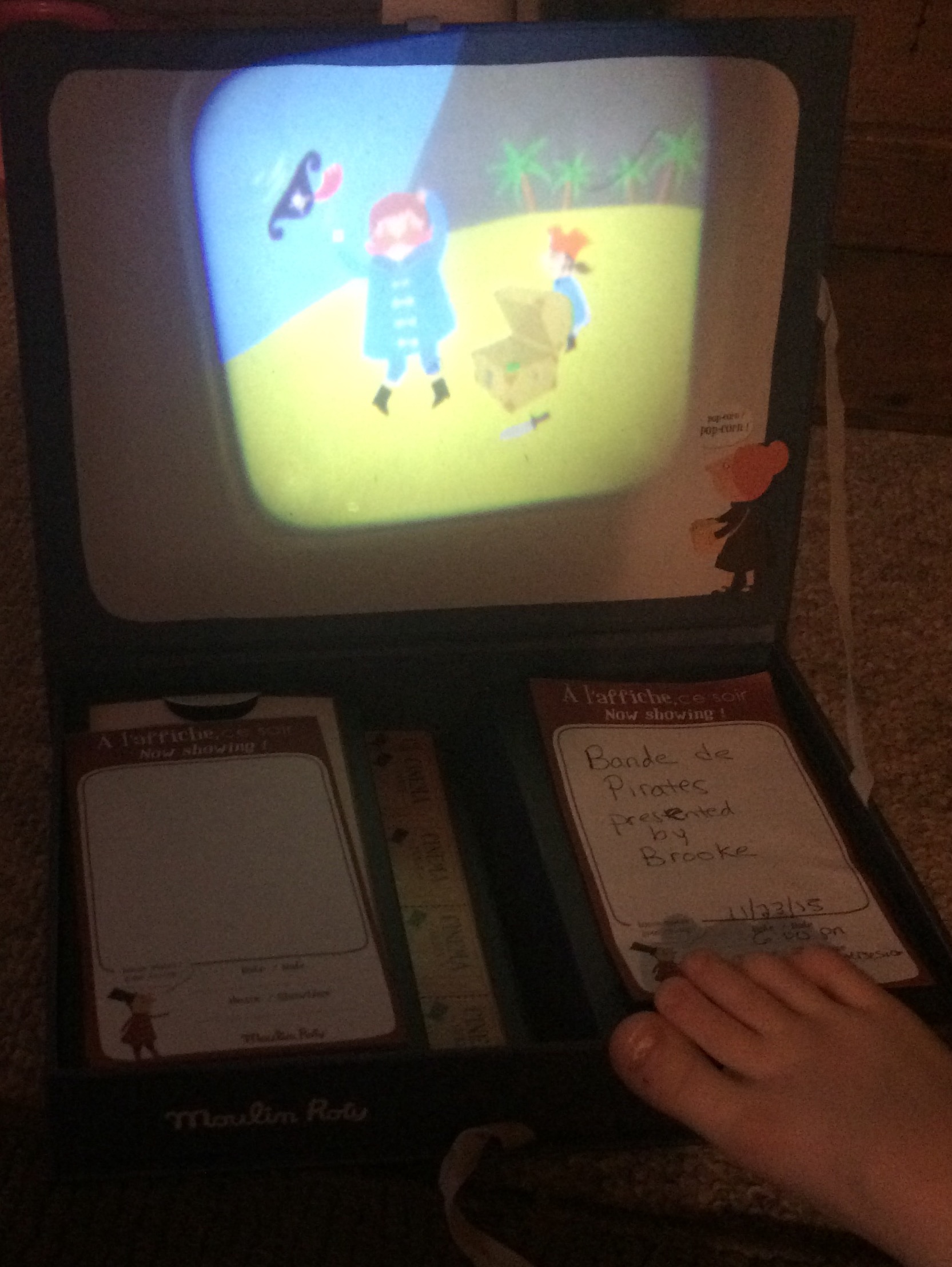 The Cinema Box includes a StoryBook tourch that is compatible with the Four Seasons Storybook and include Storybook touch included in the Cinema book to create many mini films for avid storytellers. The story torches remind me of a the vintage ViewMaster but instead of being seen by only one person at a time, each slide is projector on either the Cinema Box screen of on the way. It’s quite fun and amazing and Brooke gets really into creative a spin on all the scenes. It’s a creative child’s favorite toy and offers a lot of many different scnarios to run your very on cinema, including tickets for viewing in the audience. It’s a real blast and something Brooke should enjoy for many years to come. Score!