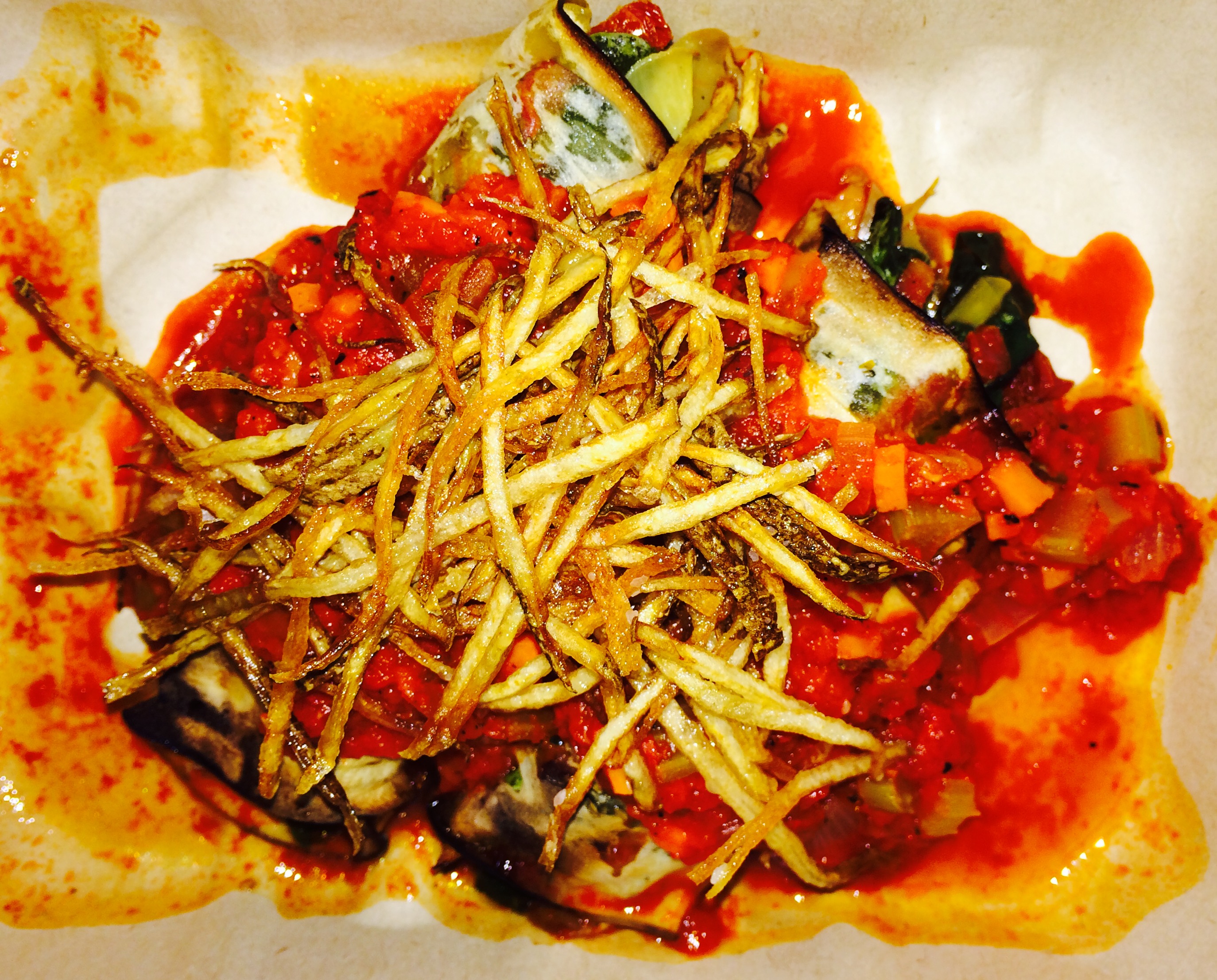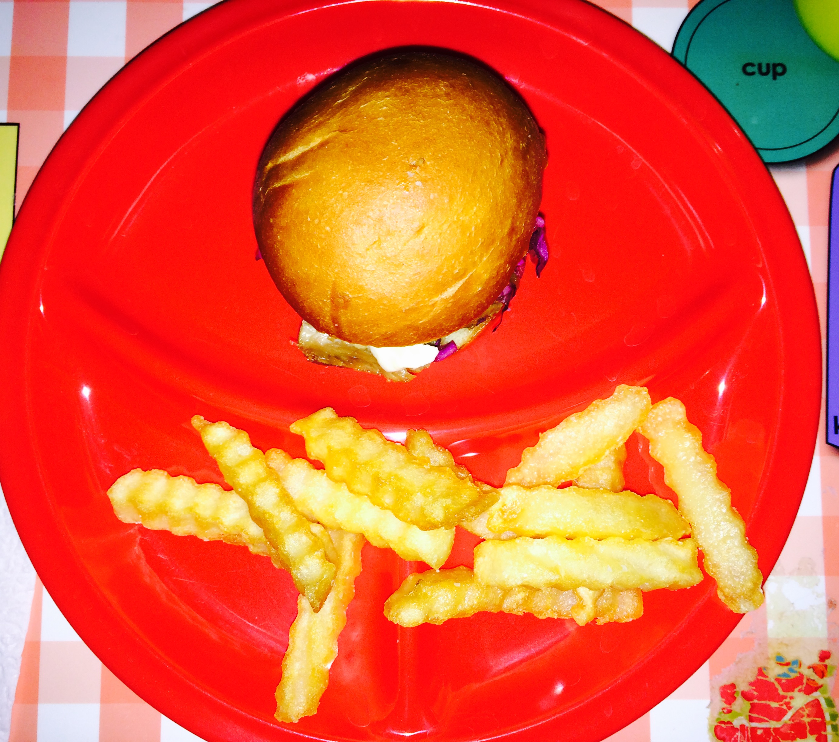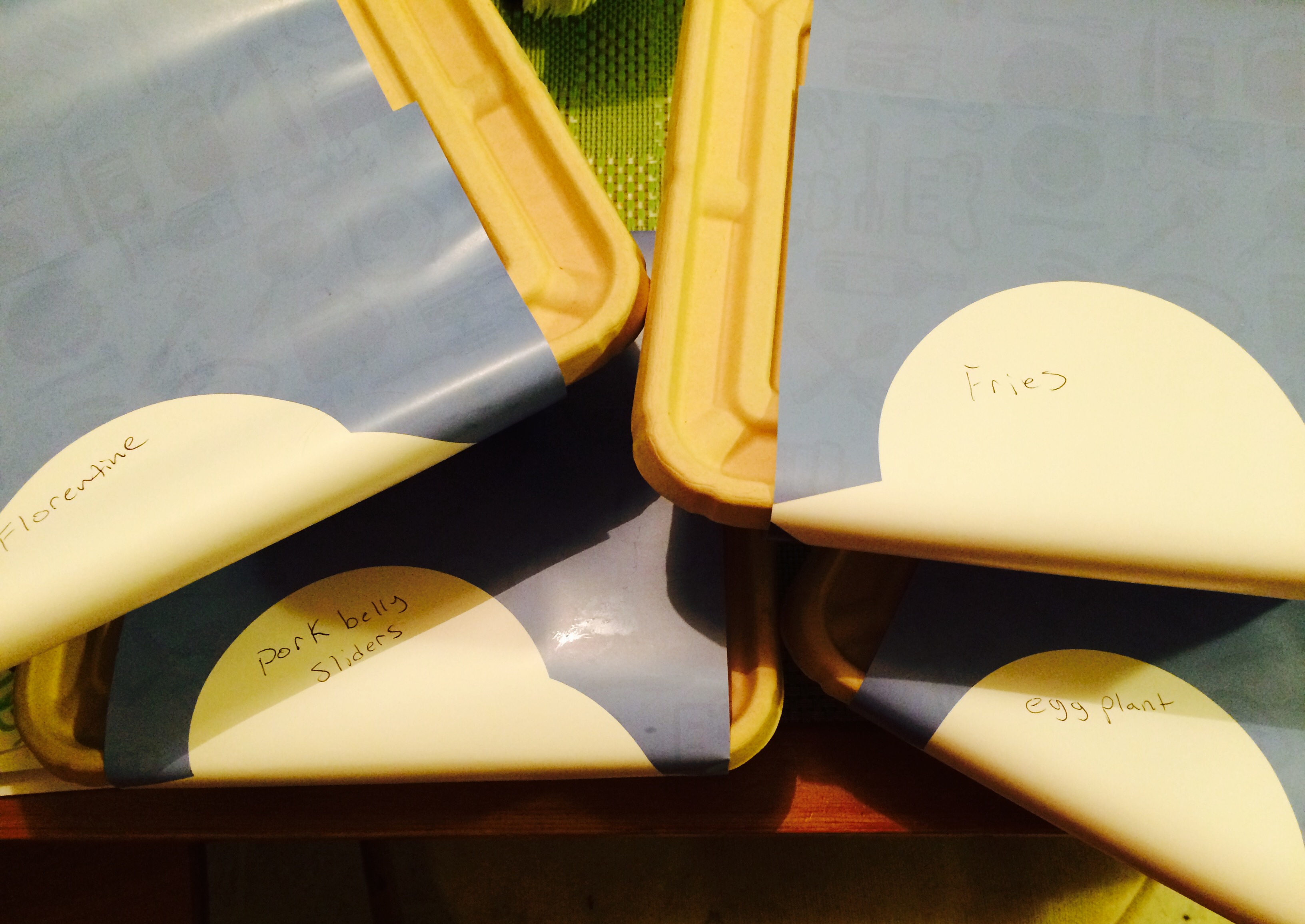 Looking at all the lovely foods in the app and trying to decide was HARD. But after much consideration, I thought Chef Steve’s menu was well planned and worked well for a family of four with two little children. During the entire order, the chef kept us up to date, and the driver even sent messages of when he expected to arrive. Awesome customer service – and now on to the FOOD! Our picky girls loved the pork belly sliders – I mean they wolfed them down. AHHH-MAZING considering Brie is pretty high maintenance when it comes to food, it did actually shock me. I knew the pork was topped with balsamic vinegar red cabbage, so somehow it all balanced out so the girls were not shouting for water or milk to wash down any vinegar taste. Of course, the fries (which were awesomely crunchy!) were a nice kid-friendly option and they happily had their fill. I am the big eggplant eater in my family. OK, I am the ONLY eggplant eater in my family, so I was overjoyed that I could eat one of my favorite dishes without having to worry about anyone else touching it or making an entire dish where no one eats leftovers. The seasoned eggplant was rolled with a spinach, artichoke hearts and sun dried tomato topped with red pepper ragyu and friend potato strings. Yummy Yum! It was the type of meal I would make pre-kids, so I was elated – and quite full — when I was done. My husband’s Chicken Florentine was to die for, but don’t take my word for it, he didn’t have a bite left for me to try. Le sigh. The herb seasoned chicken is rolled in spinach, roasted red pepper and fresh mozzarella and served with roasted red potatoes with squash and zucchini that is drizzled in cream sauce. So, yes, if you haven’t gathered by now, the menu options we chose were wonderful, the prices are reasonable, and the cheap delivery option is perfect for families who need a nice home cooked meal but don’t have the time or energy to do it. Two oven mittens up!