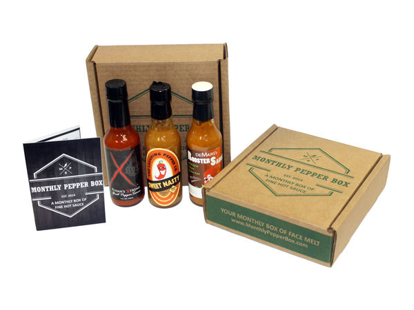 Monthly Pepper Box is a hot sauce sampler box filled with 3 unique hot sauces every month. Discover independent hard to find face melting, every month!
