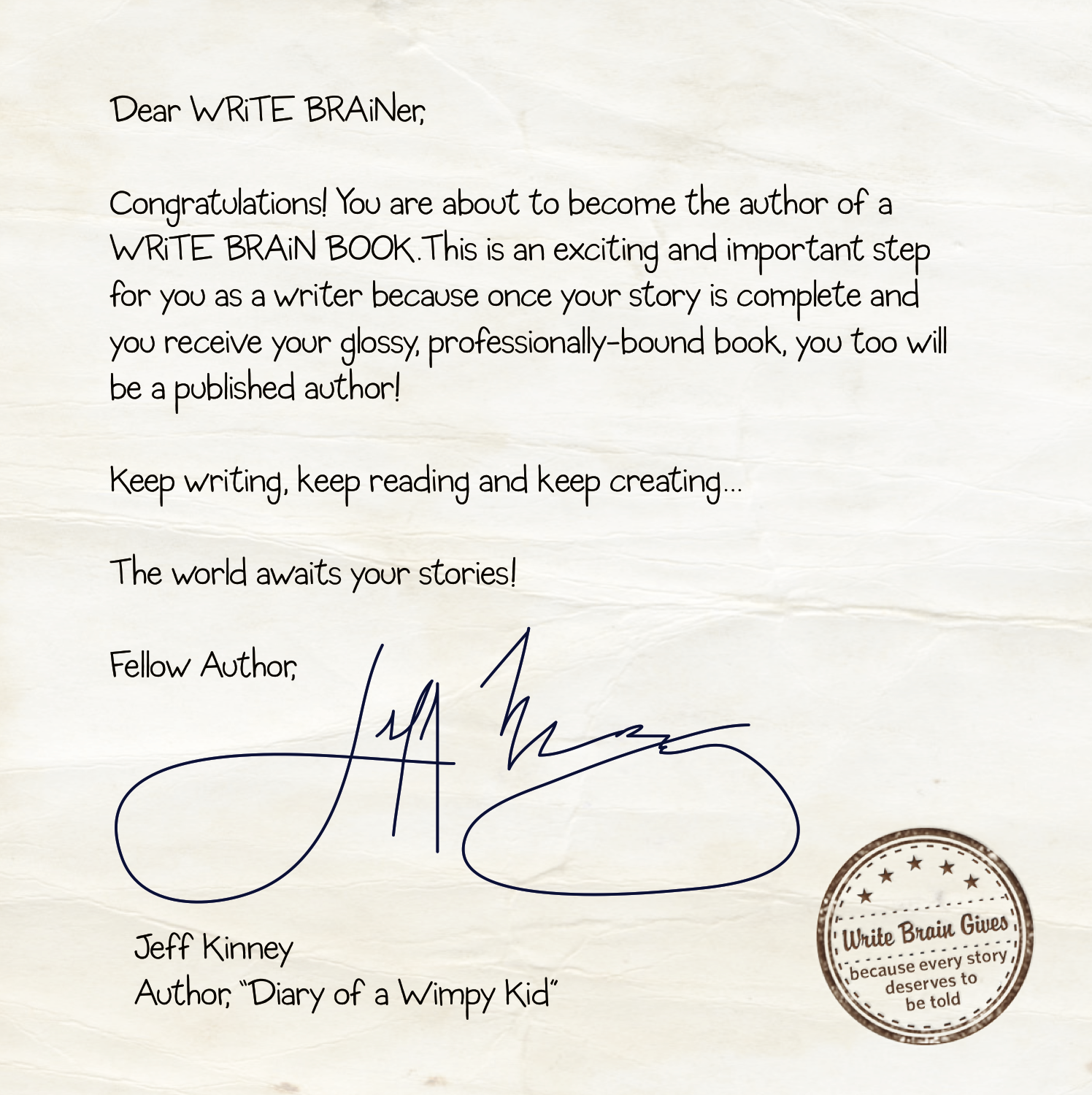 - How does the Author’s Kit help to inspire kids to find their own voice to be able to create published books? The WRiTE BRAiN PUBLiSHED AUTHOR’S KiT comprises everything anyone, of any age, would need to become a published author of an original children’s book: A richly illustrated, wordless book with lines on the pages for any author’s story, an in-depth Author’s Guide, illustrated Story Card (with writing games), illustrated Story Mat, author’s certificate, idea pad, FREE BOOK coupon, pencil, and publishing code for a professionally printed, perfect bound final book. It’s an exciting, imagination generating experience that makes kids WANT to write! Self-esteem is elevated throughout the creative process of self-expression. Kids find their own voices as they give voices to the characters they bring to life on the pages of their WRiTE BRAiN BOOKS.