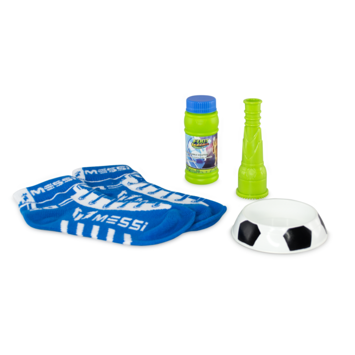 The Messi FootBubbles starter pack includes everything you need to get juggling bubbles with your feet, just like Leo Messi.