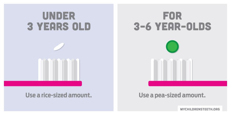 Make sure your child is using the correct amount of toothpaste for his or her age when they brush a minimum of twice a day!