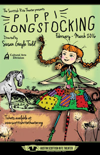 Pippi first appeared on the Scottish Rite stage in April 2013 and is back by popular demand in February 2016.