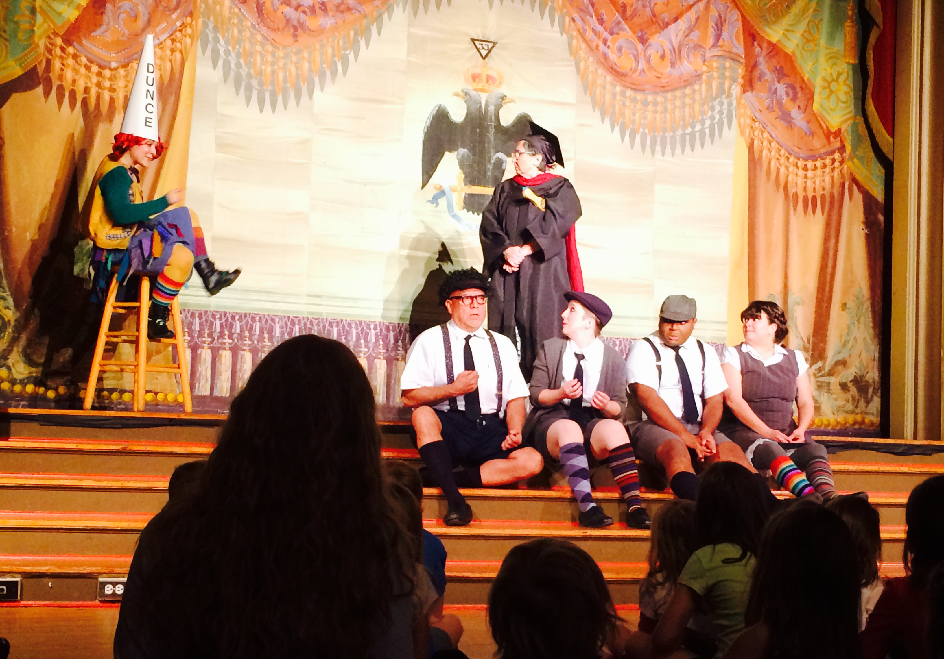The most fun thing about seeing a children’s play at the Scottish Rite Theater is that children have the center stage in the audience. There are rugs right in the front area for kids (and any accompanying adults) to see the show at their eye level. It’s a wonderful opportunity and if you haven’t taken your young child to see their first play yet, I highly recommend taking them to a Scottish Rite Theater production. On top of the children’s seating area, they have boxes of crayons for children to color on their show pamphlet. It’s the little things like that which make this theater so special.