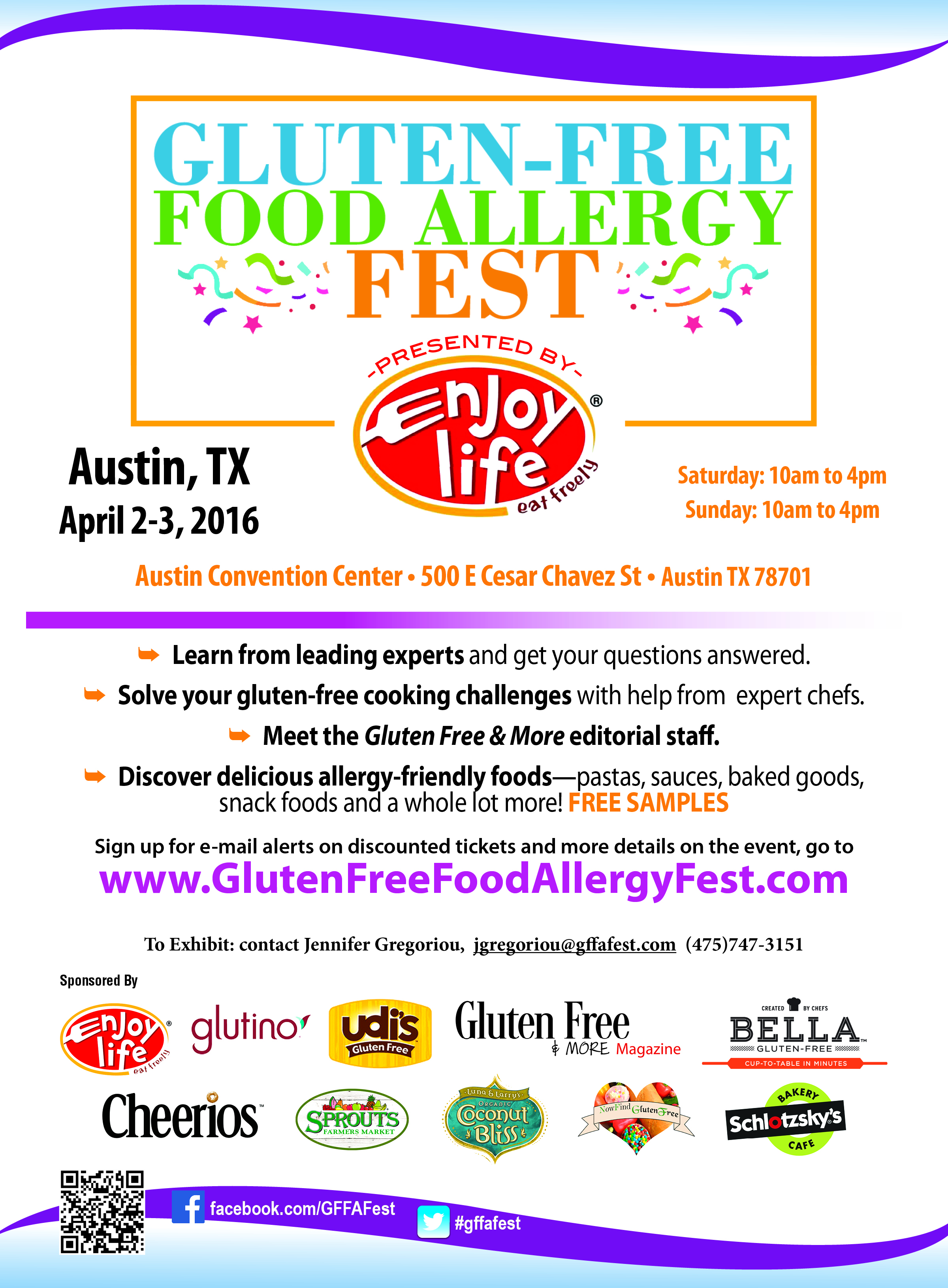 The Gluten Free Food Allergy Fest is the largest expo of it’s kind in the Austin area. The Gluten-Free Food Allergy Fest is presented by Enjoy Life Foods.