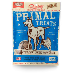 The Primal Pet Foods treat line was created for dogs and cats with the goal of providing wholesome, human-grade snacks containing no preservatives, gluten or grain. The treats are produced using USDA meats, poultry and game raised in the United States or New Zealand without antibiotics or added hormones. The Primal Pet Foods come in a variety of different cooking styles and different proteins such as beef, buffalo, chicken, pork, turkey and venison. Primal Treats are produced using low-temperature, slow cooking techniques such as freeze-drying and slow roasting, yielding high-density nutrition in a shelf-stable snack product. All Primal Treats are single source proteins and offer a healthy choice for all pets, especially those with food allergies. These treats are a perfect HEALTHY snack alternative for your pet.