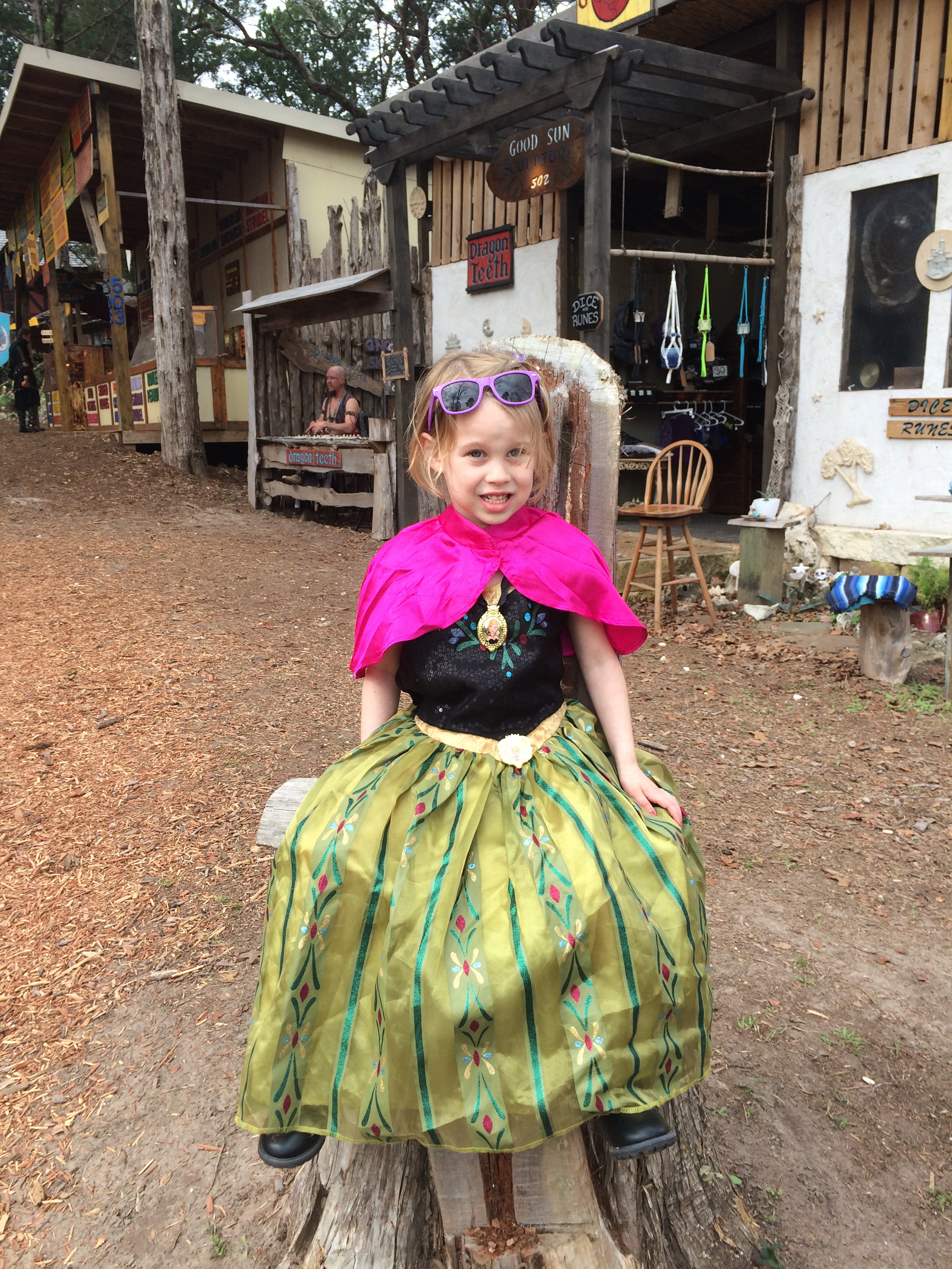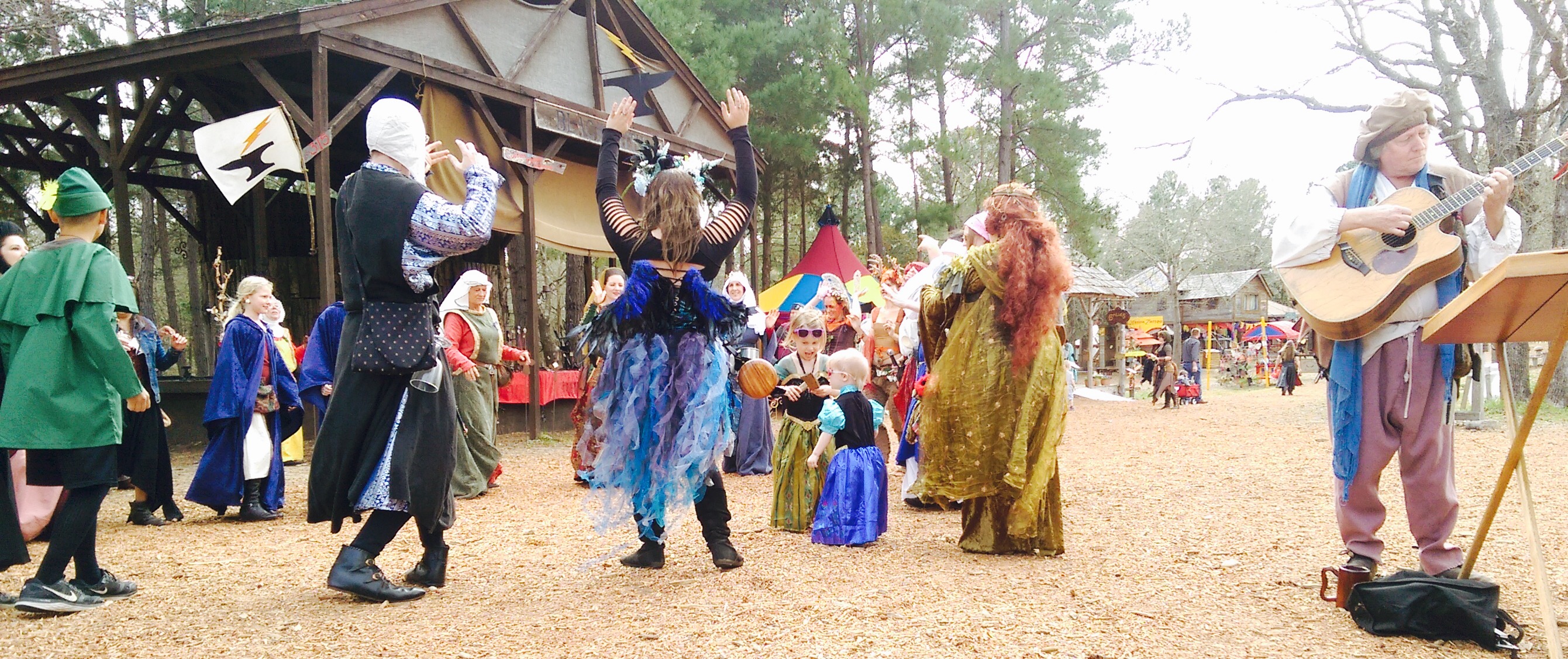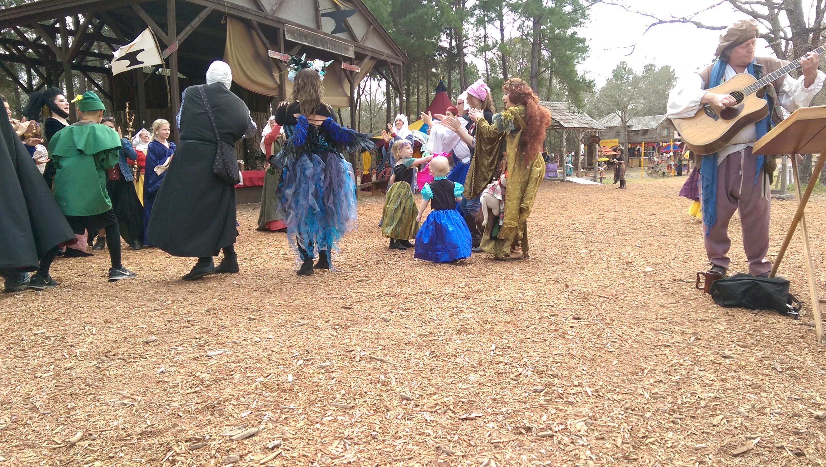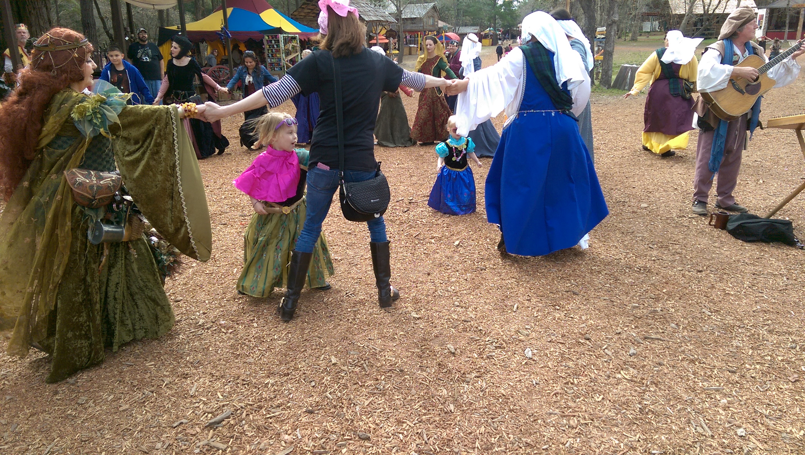 As soon as we got into the Faire there was a band playing and a group of ladies asked if we wanted to join the dance circle after seeing our girls dancing around. We were all game, and as you can see, Brooke and Brie happily danced in-between our dance circle. The girls both love to dance and there were plenty of opportunities for them to dance away the entire time there. The girls never passed up an opportunity if they heard music playing.