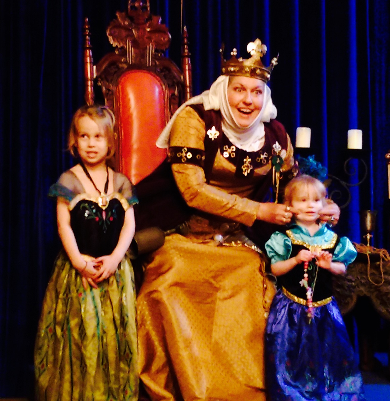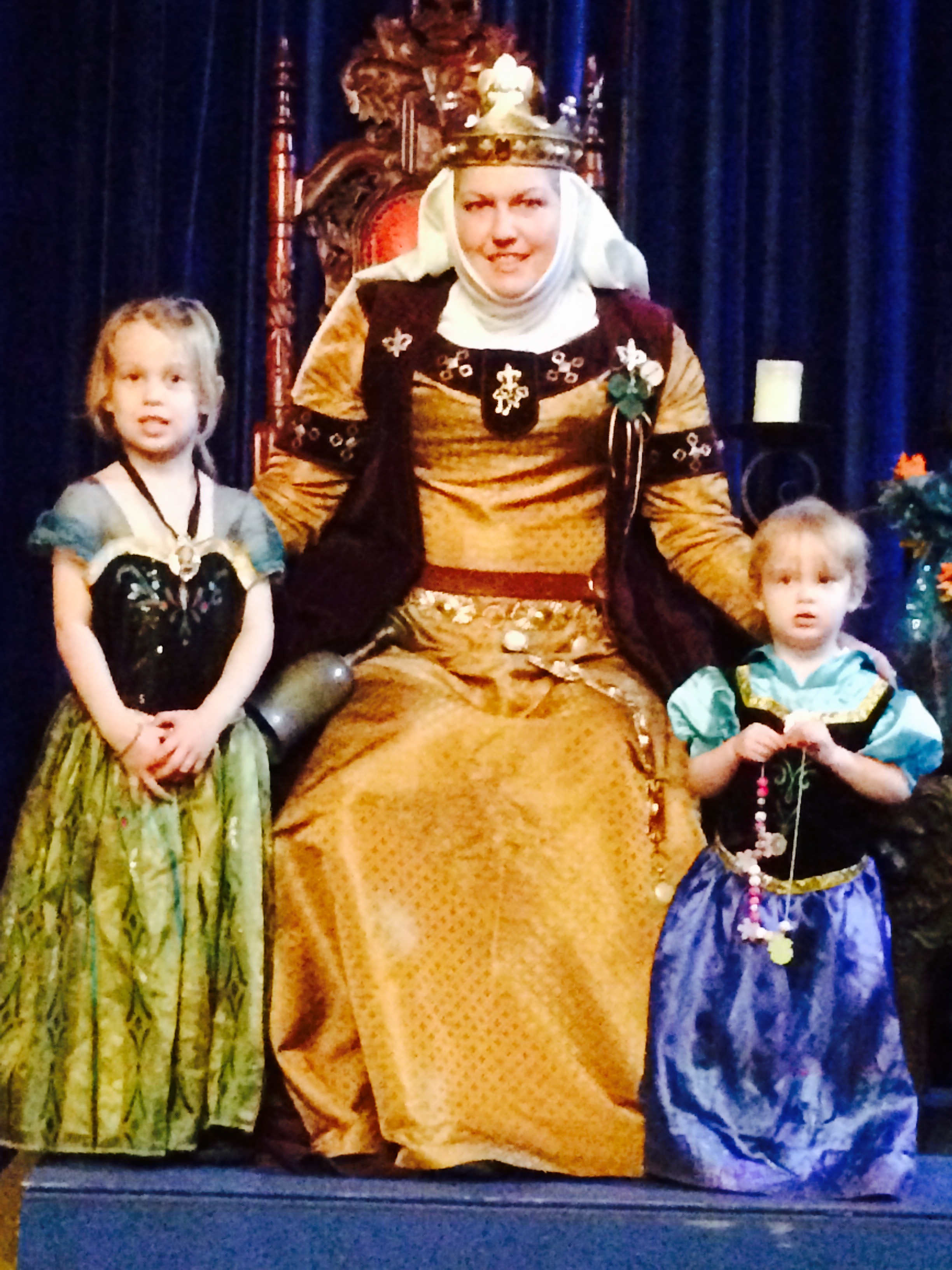 Probably the highlight of our time at the Sherwood Forest Faire was being able to go into the official ‘Sherwood Forest’ castle and meet the TWO QUEENS of the Faire. Apparently, after inquiring, we learned that the Faire has two different Queens from different realms. Wow! Brie was in awe the entire time we were in the castle and I think she really thought she was meeting royalty. It was pretty hilarious. The ladies were all so sweet to our girls, even giving them little ‘friends of the Queen’ trinkets to wear during the festival. Brooke is saving hers in her jewelry box.