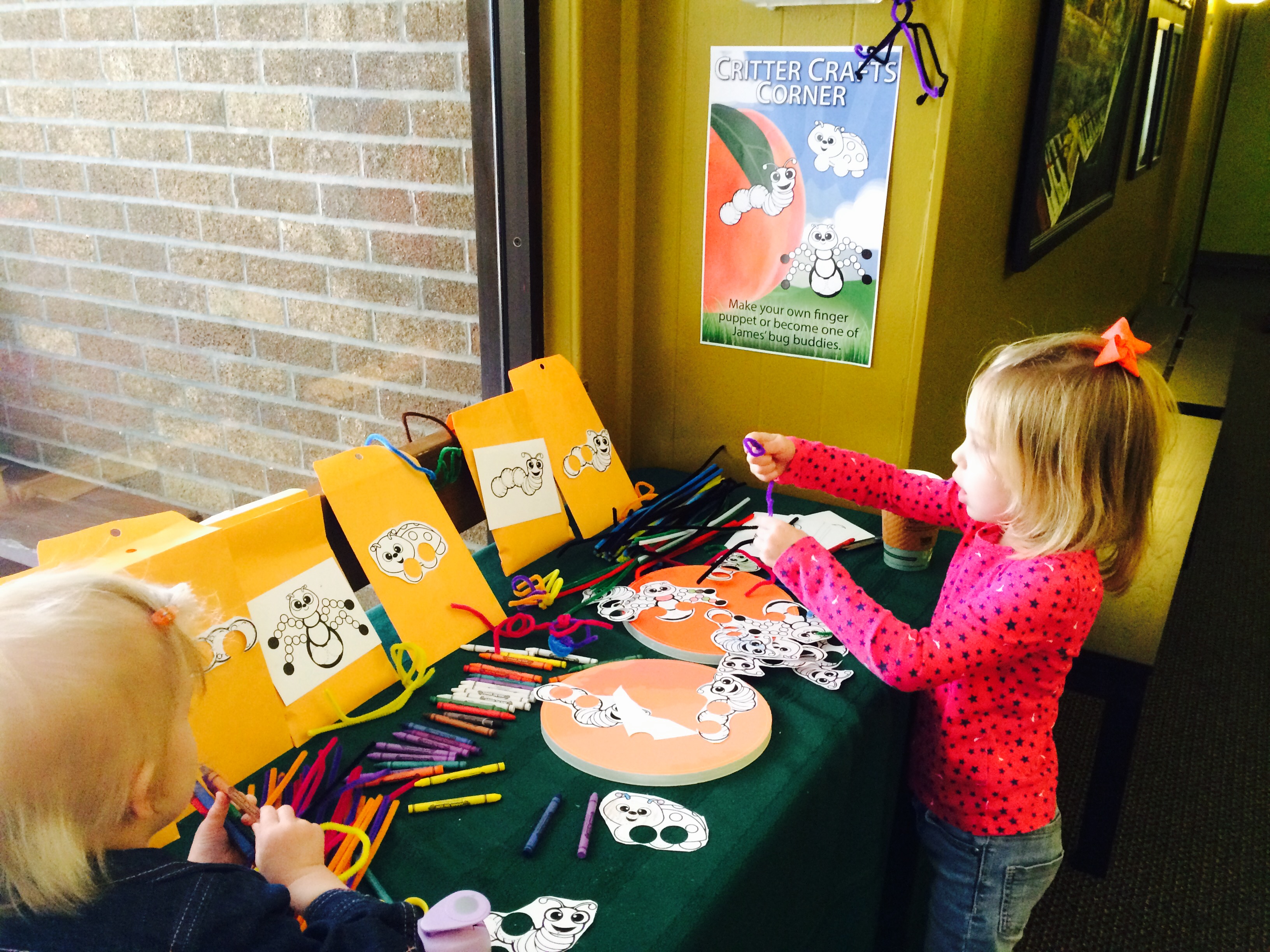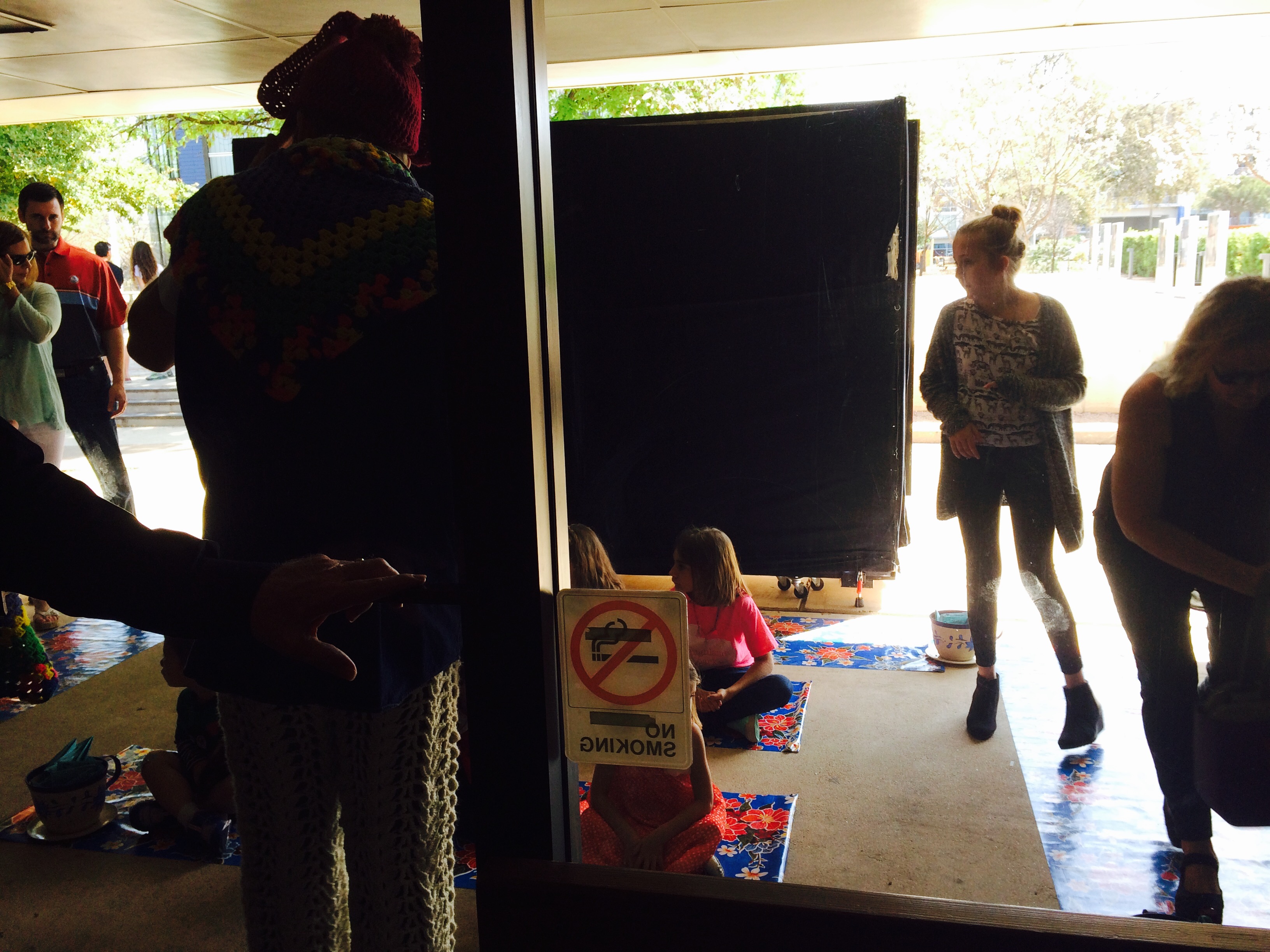 The first half of the hour long play (that includes a nice 15 minute intermission in the middle) focuses on how James comes to live with his aunts and how his love of insects comes full circle when he encounters the old and rotted peach tree his aunts insist that little James cut down. As in the book, James meets a mysterious stranger who has the ingredients to create a magic elixir that accidentally gets on the tree instead of in James! The cast turns from insect puppets into life-sized versions after the lone magic peach that sprouts from the barren tree becomes GIGANTIC. The songs were lovely and each member of the cast was amazing in their role. The worrisome earthworm to the hilariously evil Spiker and Sponge were correctly cast and the boy who played James not only did a wonderful job acting, the boy could sing. The English accents were a nice touch and a nod to the UK-born Dahl. Lovely! The intermission came too soon, but it was a welcome break for our kiddos who happily had restroom breaks and went to the theatre’s little craft corner. During intermission, we also got to see an outside portion of the production of Alice in Wonderland, which is also playing at the ZACH simultaneously (it just began last night!) What fun!