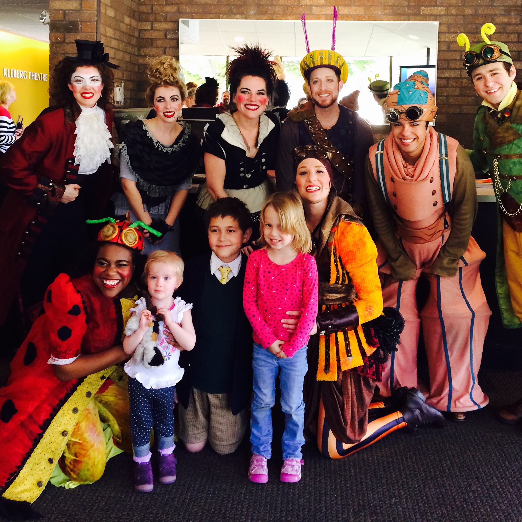 After intermission, the girls were ready to find out the fate of James and his humanoid insects as they floated in the ocean to an unknown destination. Even knowing how the book ends, we were all on the edge of our seats as Spiker and Sponge catch wind of ‘their’ giant peach in the water as they are in route to New York City. Without completely spoiling the ending, our kids were dancing in their seats and we almost couldn’t believe it when it was over. As always, we waited in line to meet the cast and take pictures. That’s always a highlight of our trips to the ZACH. We had also bought some light refreshments before the play began – which is always a must for Brooke and Brie – and since we caught the earlier show, Bob and I had coffee (double YES!). The ZACH is such a fun adventure and each and every play is so different and exciting. We are looking forward to seeing Alice in Wonderland next and Brooke is enrolled at an upcoming ZACH camp for kids which she is so excited to attend. Our lives have been enriched by the ZACH’s family productions and we look forward to many more in the future. Who knows? Maybe one day we will be watching our girls on the stage because they certainly seem to be heading in that direction. It’s a wonderful way to introduce children to the arts and since Brooke and I always make sure we are well versed in the book before seeing the play, we use the ZACH’s plays to enrich her reading and learning experience. We feel so fortunate to be part of the audience. Thank you, ZACH Theatre for another home run.