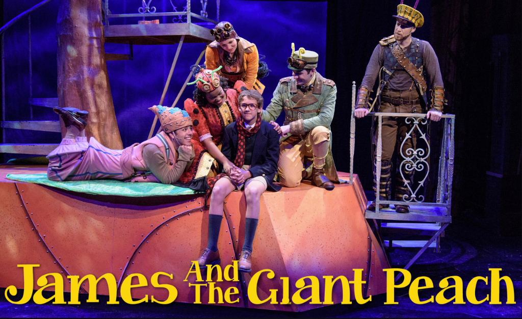 About the Show: When James is sent by his conniving aunts to chop down their old fruit tree, he discovers a magic potion, which results in a tremendous peach – and launches a journey of enormous proportions. Suddenly, James finds himself in the center of the gigantic peach among human-sized insects with equally over-sized personalities, but after it falls from the tree and rolls into the ocean, the group faces hunger, sharks and plenty of disagreements. Thanks to James’ quick wit and creative thinking, the residents learn to live and work together in this charming family musical.