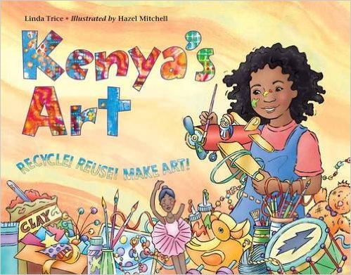 The book Kenya’s Art is all about a young girl using old or broken items to make art with her family and writing about it for a paper for school about what she did on her spring vacation. Her visit to a museum recycling exhibit and a walk around her neighborhood with her dad inspires Kenya to start making her own art to reuse and recycle materials into something beautiful. We immediately began discussing how Brooke did the same with her puppet making which was a great way to tie in the story to her life. Brooke really liked that! I love books that spark creativity and talk about important issues like helping to reduce our carbon imprint on the earth. Kenya’s was able to present her paper to her class and was able to share her new hobby with her classmates. This was a perfect and original story that excited Brooke about her new hobby of making puppets with reusable materials. We are going to check out another Kenya book by Trice now called Kenya’s Song, too. Love!