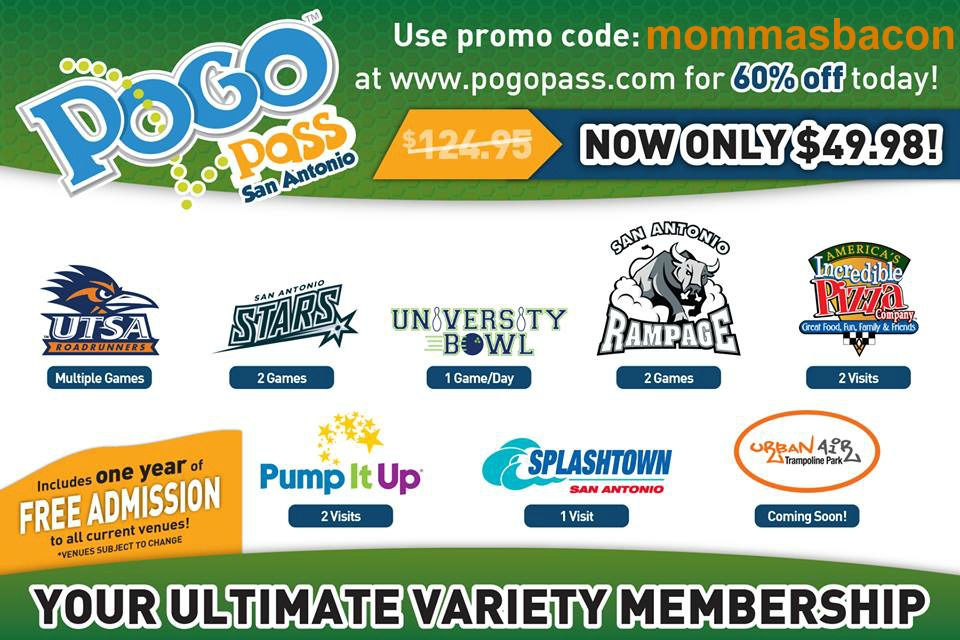 Coupon Code! My readers get an opportunity to get 60% off the price of the annual Pogo Pass by using the coupon code “MOMMASBACON” upon check out at www.pogopass.com. This is a limited time offer, so act now!