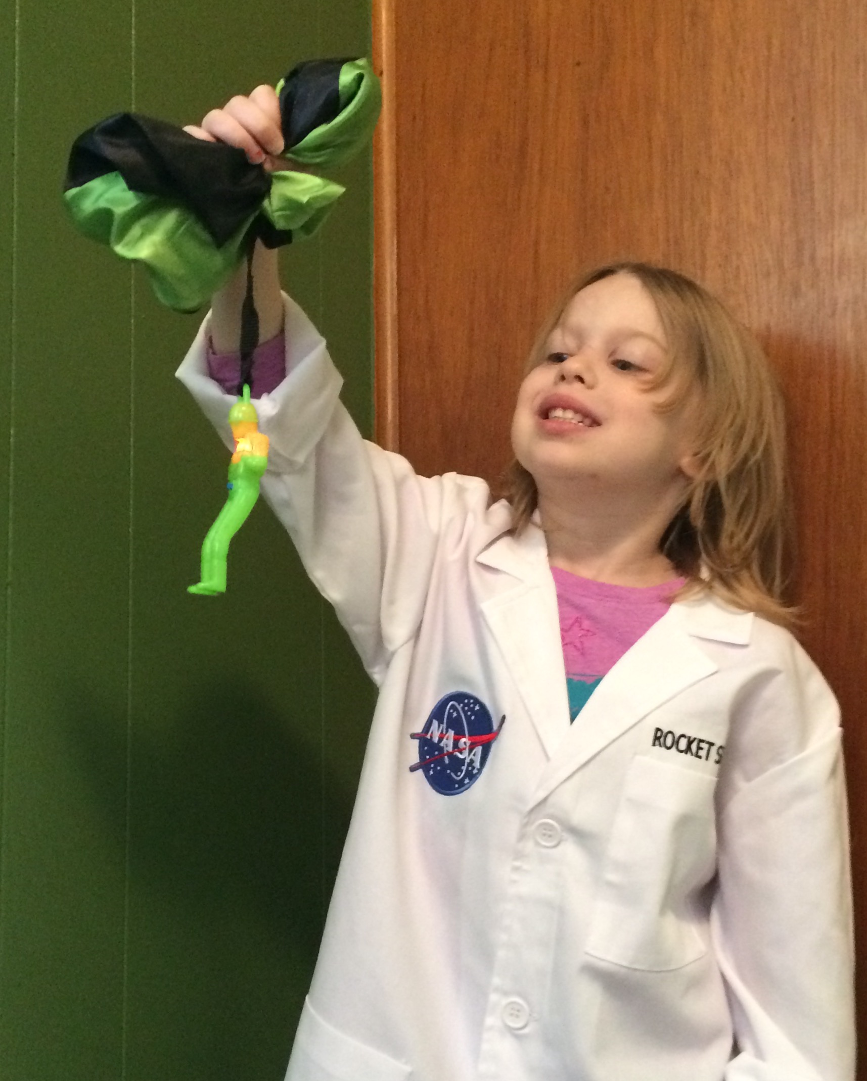 Perhaps I missed my calling as an astronaut or rocket scientist, but darn it all, I get queasy on little kid rides, so I just like to pretend space missions with my daughters. Over the years, Brooke and I have made a space rocket out of recycled cardboard, have had many pretend missions in space, and have eagerly learned about our solar system. Aeromax Toys makes it SO EASY for pretend play with their very realistic looking dress up items for kids. We started out with the Jr. Astronaut Back Pack (it’s practical as a back pack, plus it’s space themed) and then slowly moved up the ranks with all the other awesome space gear from this company (space boots and helmet included!) It’s really not a surprise to me that she has an interest in how rocket science works. She recently attended the University of Texas Girl’s Day STEM fest and has been very interested in the inter-workings of electrical currents since the event. She saw the Aeromax Jr. Rocket Scientist Lab Coat and immediately said, “That’s for me!” Yay!