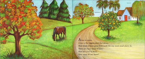 Did you know that a tree is the biggest plant that grows? They can live for a VERY long time and are alive all year round – even in the dead of winter. In the Let’s-Read-and-Find-Out Science series, this re-illustrated book by Clyde Robert Bulla (who originally wrote the book in 1960) on the science of trees is well designed for preschool and early-primary-grade children. The text follows an apple plant from seed to sprout to tree, including the development of blossoms, leaves, and fruit.